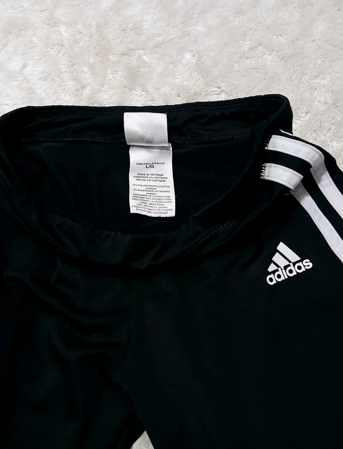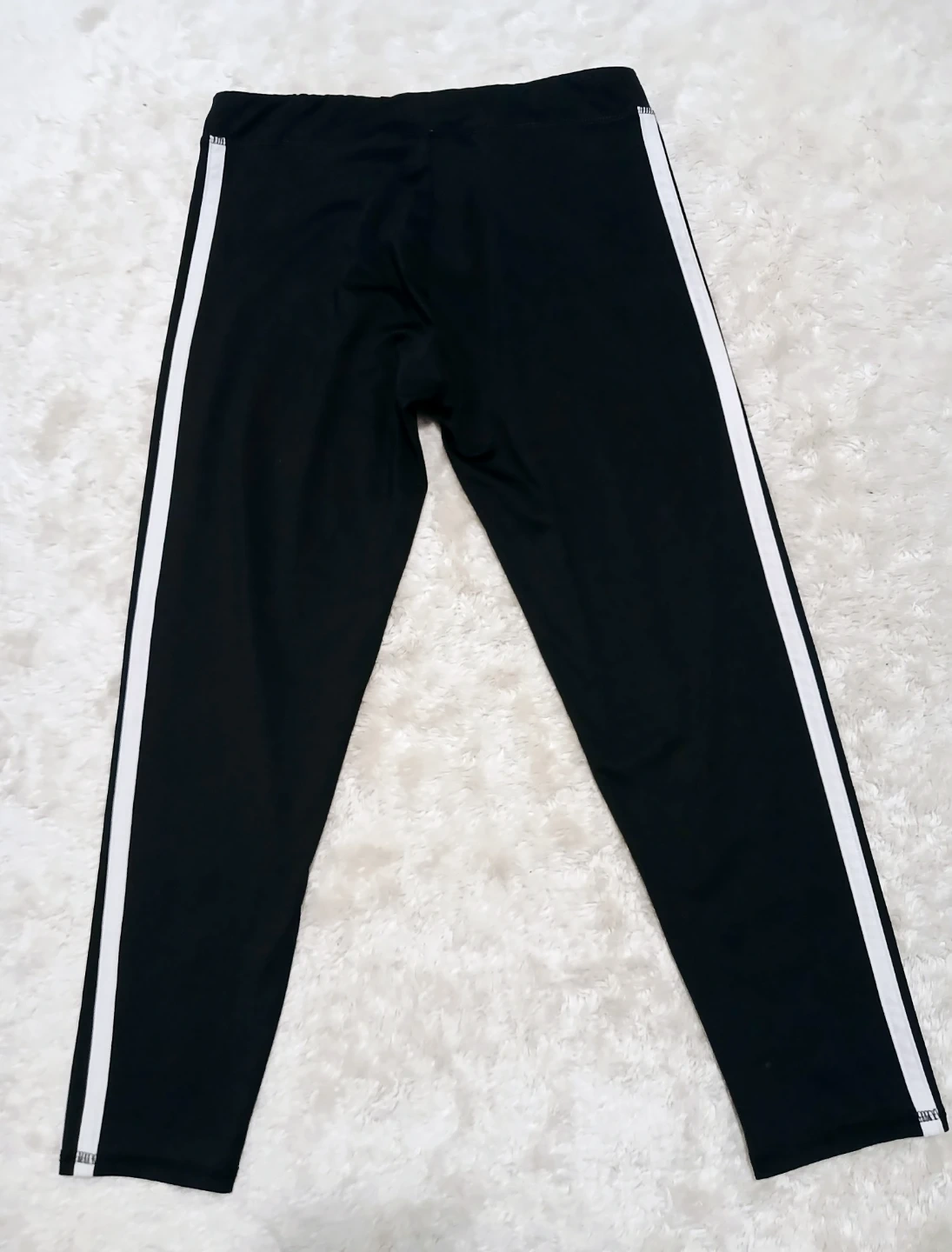 Classic black leggings with iconic white 3-stripes down the sides. They're made with a comfortable stretch fabric for a great fit. Perfect for casual wear or athletic activities! Made in Vietnam.