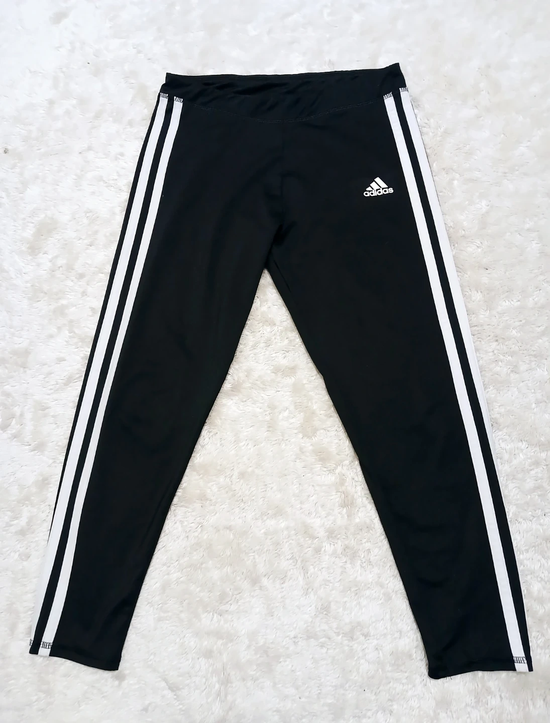 Classic black leggings with iconic white 3-stripes down the sides. They're made with a comfortable stretch fabric for a great fit. Perfect for casual wear or athletic activities! Made in Vietnam.