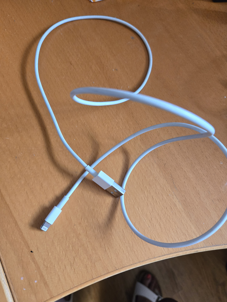 Selling a used iPhone 12 Pro case with a unique marble design in shades of blue and gold. Also including a pair of Apple EarPods and a lightning charger cable. All items are in good condition and ready for a new home!