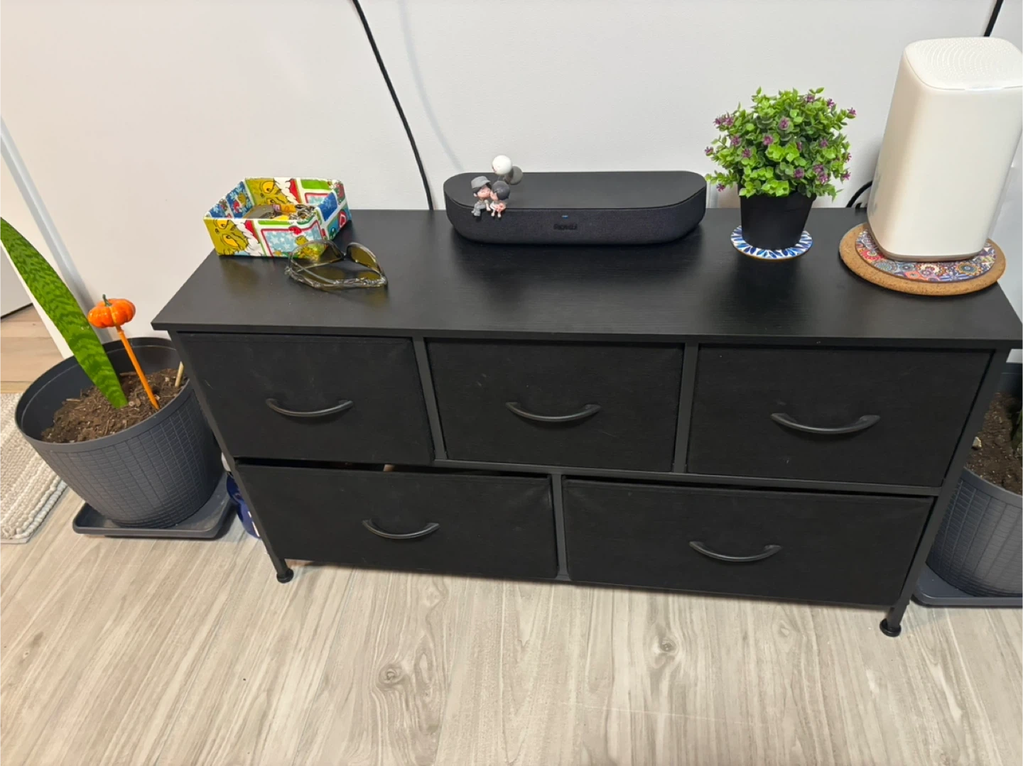 4-Drawer Storage Unit with Wood-Look Finish bed side table