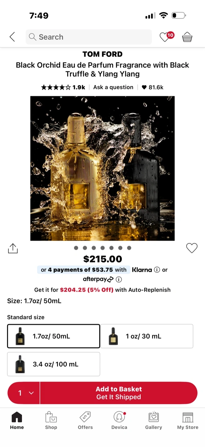 Tom Ford Black Orchid Eau de Parfum in the 1.7oz/50mL size. This fragrance features notes of Black Truffle & Ylang Ylang. It's a rich and sensual scent. Perfect for evening wear.