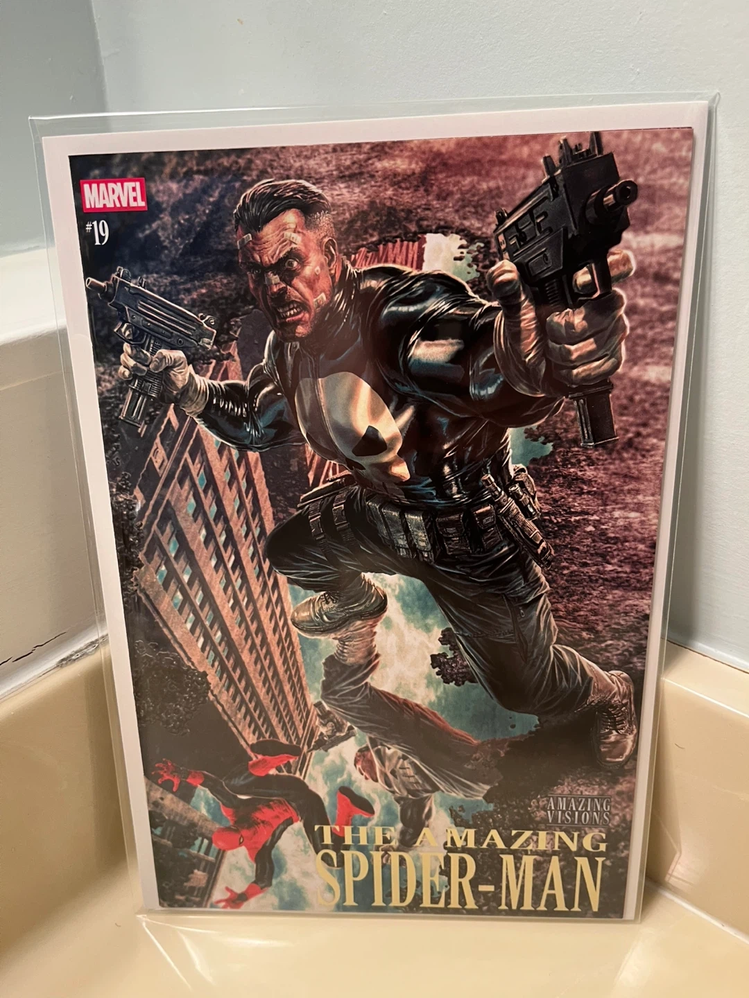 Amazing Visions variant cover depicting the The Punisher vs Spider-Man drawn by Lee Bermejo