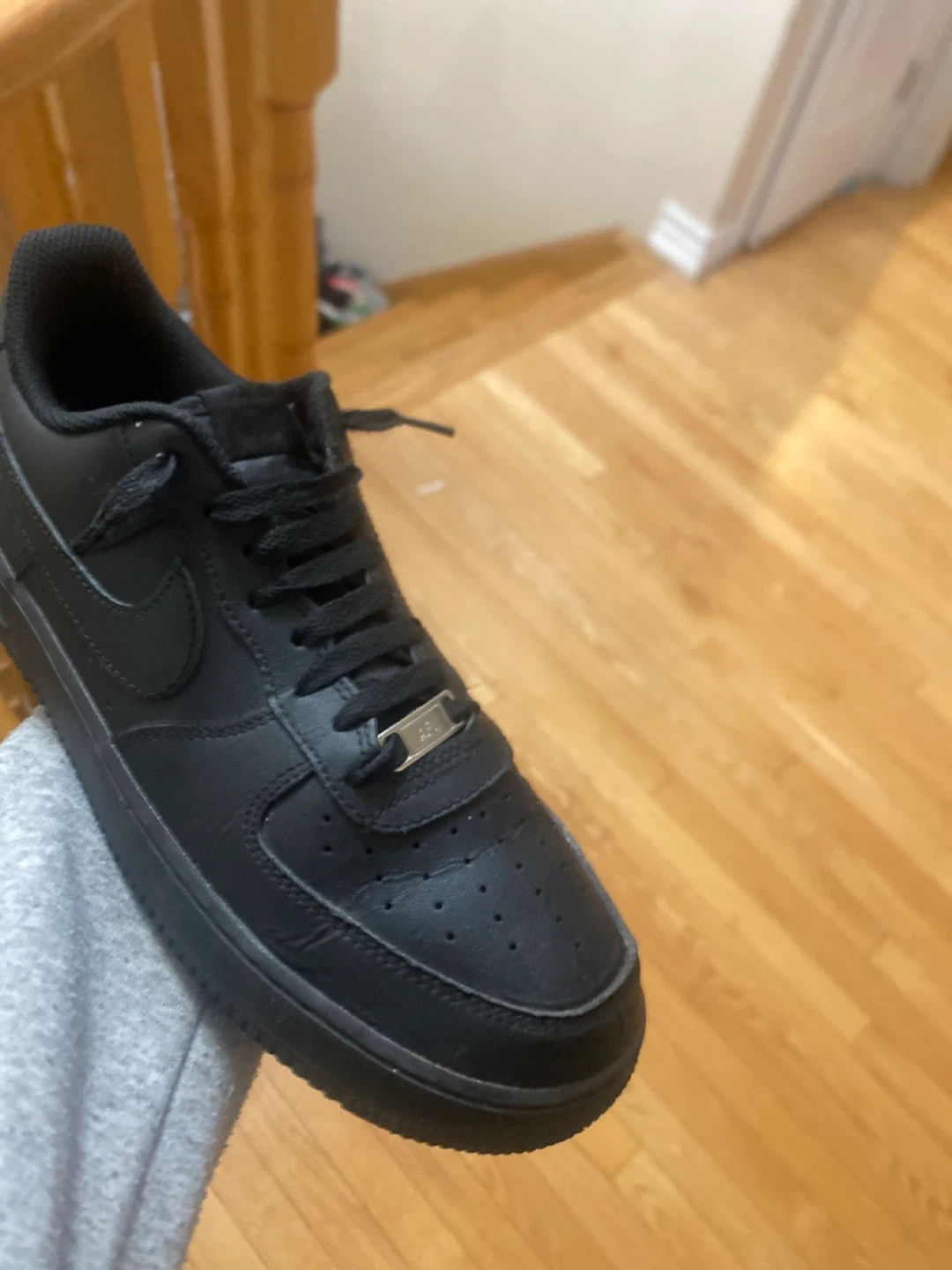 Classic Nike Air Force 1 Low sneakers in a stealthy all-black colourway. These kicks are made with a durable leather upper and feature the iconic Nike swoosh. They're built for comfort and style, making them a versatile addition to any wardrobe. A staple for everyday wear!