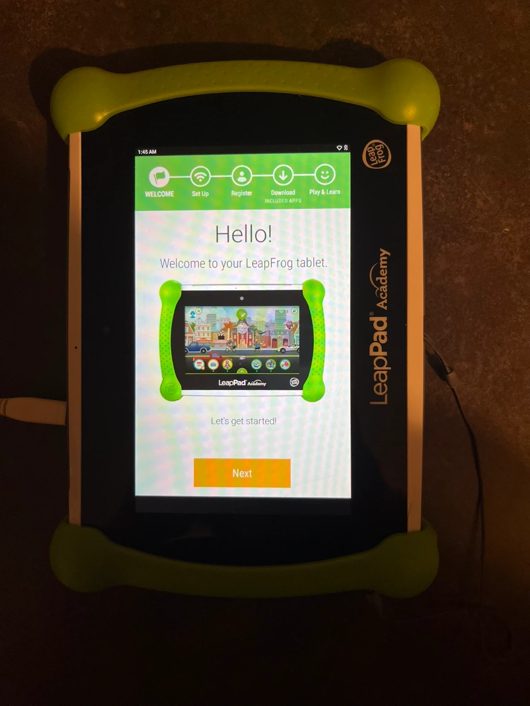 This is a LeapFrog LeapPad Academy tablet. It's a learning tablet designed for kids. Comes with a charging cable. Perfect for young learners to explore educational content!