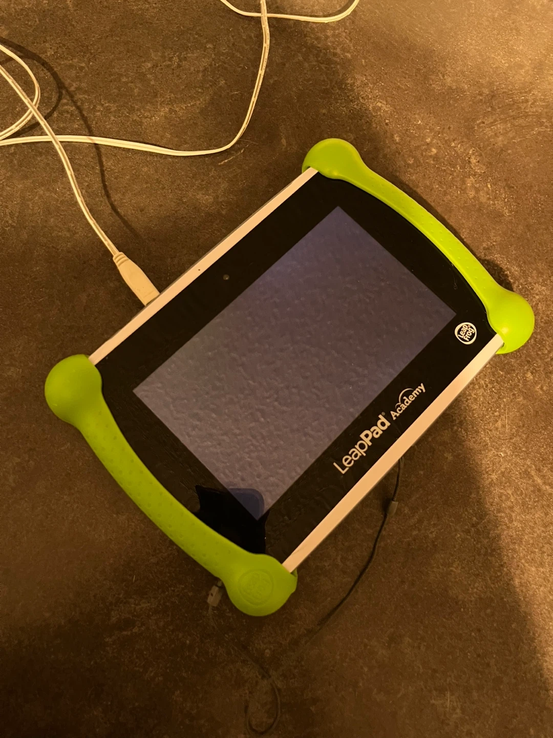 This is a LeapFrog LeapPad Academy tablet. It's a learning tablet designed for kids. Comes with a charging cable. Perfect for young learners to explore educational content!