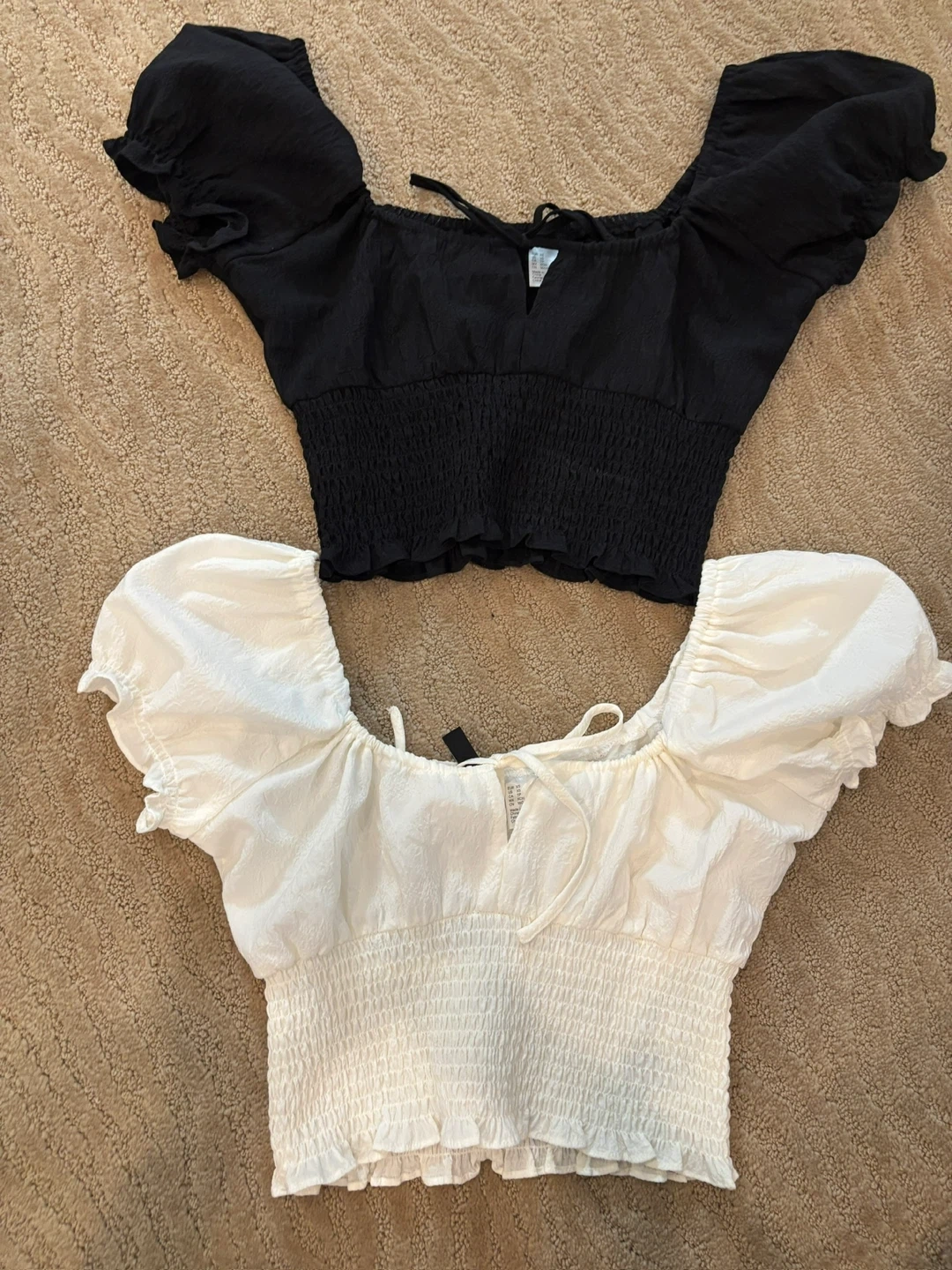 - Includes: Two crop tops (one black, one white)