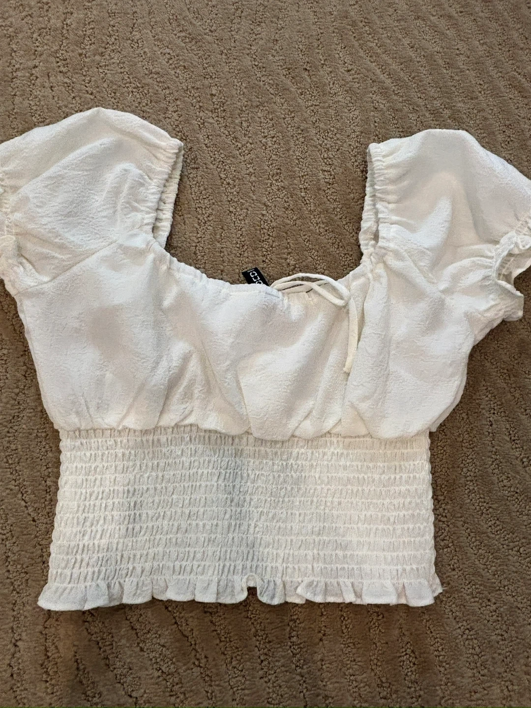 - Style: Puff sleeve with tie front detail