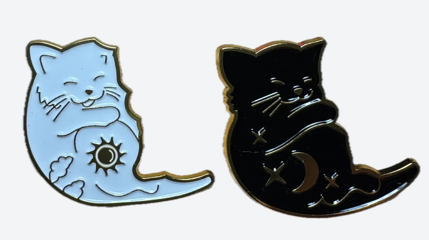 Cute yin yang cat enamel pin set.