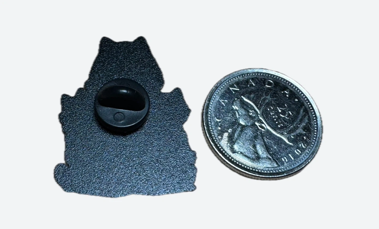 Metal pin with a secure backing. It's a fun accessory for jackets or bags!