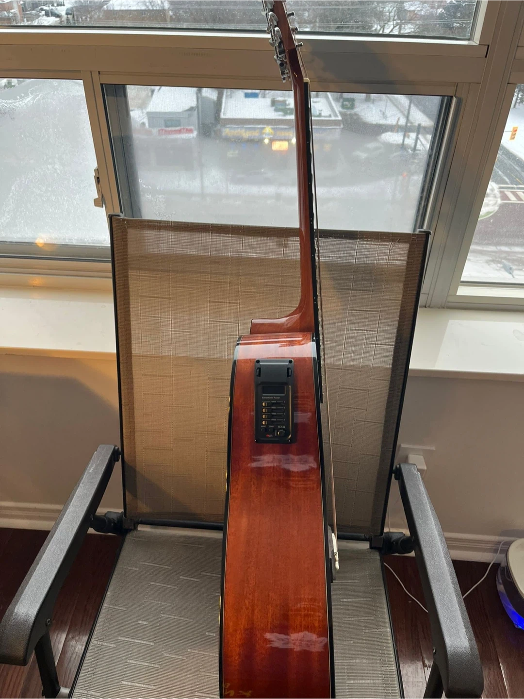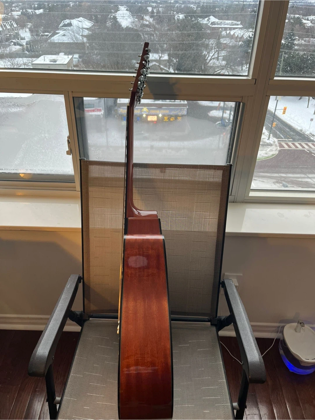It was purchased but never really played. The guitar is in perfect condition, exactly as shown in the photos.