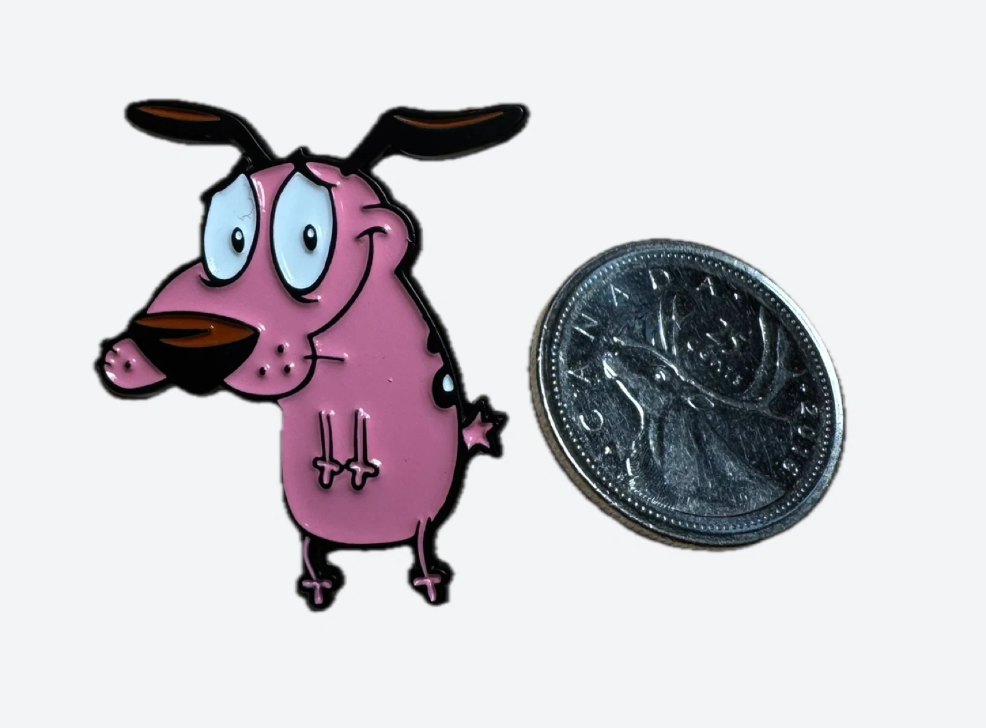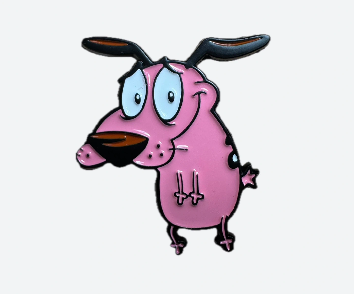 Cute enamel pin featuring Courage the Cowardly Dog.