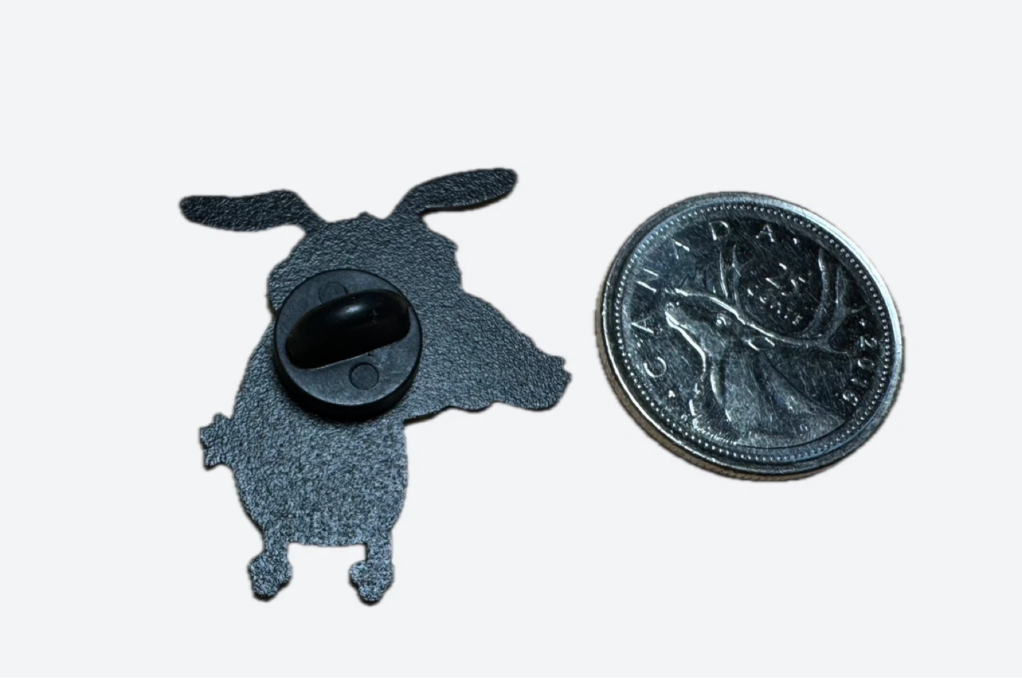 Pin measures approximately the size of a Canadian quarter.