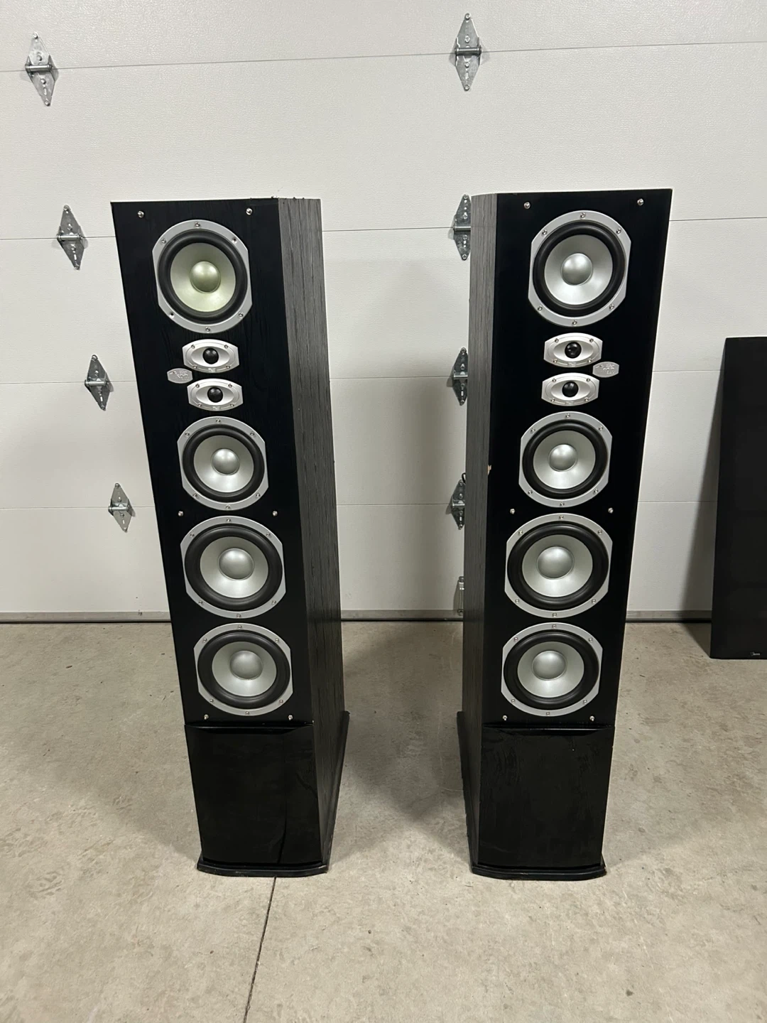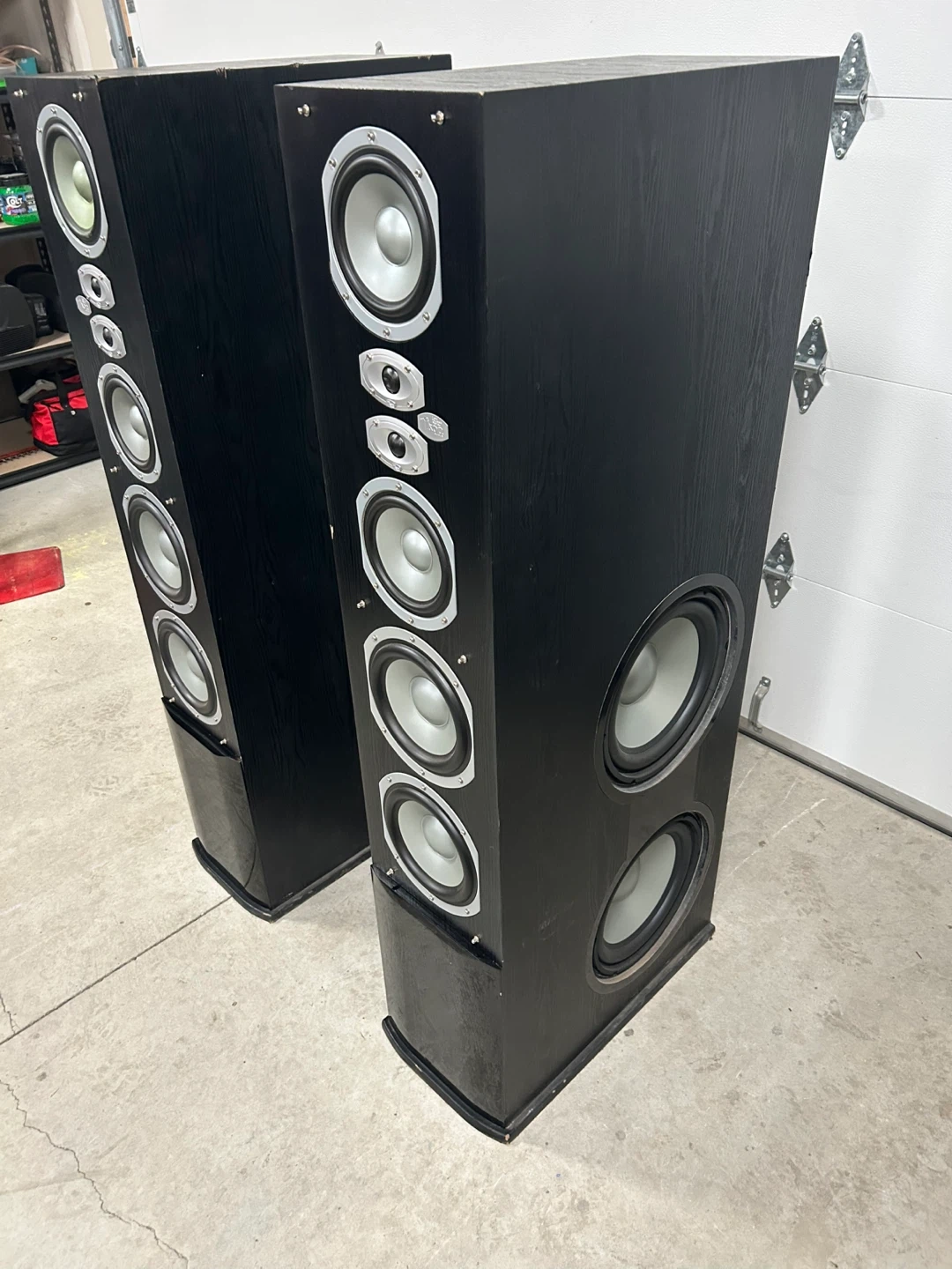 For sale is a pair of Ikon CM6800L floor standing speakers, each boasting a powerful 500 watts and an impedance of 8 ohms. These speakers deliver exceptional sound quality and are perfect for any audiophile looking to enhance their listening experience. These speakers are about 100-120lbs each, you will need help to load and most likely a pickup or large SUV as they are almost 5 foot tall.