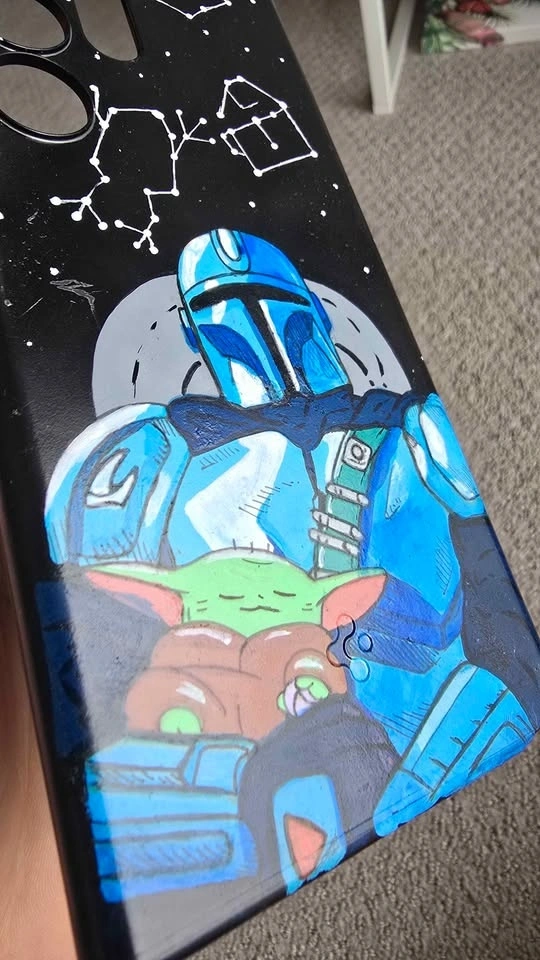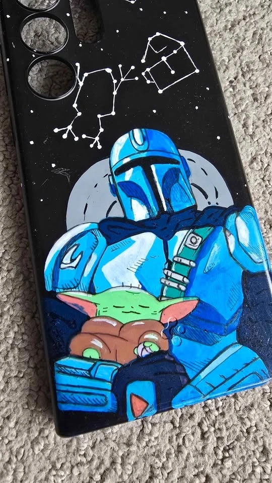 Never worn custom painted case for Samsung S23 Ultra. Bought it but ended up getting an S24 Ultra, so it doesn't fit. Features a Mandalorian design painted with acrylic markers. Pick up in Central Lonsdale, North Vancouver.