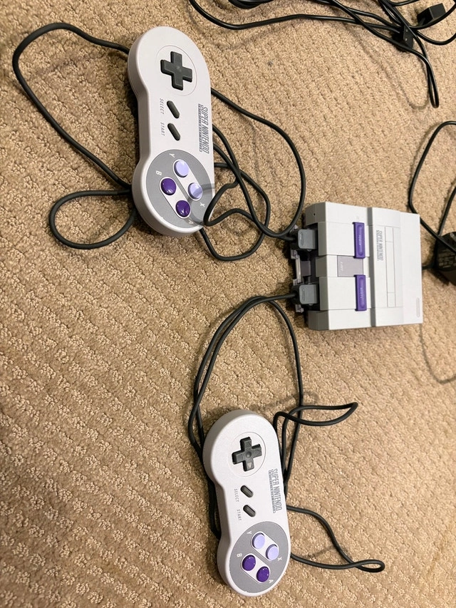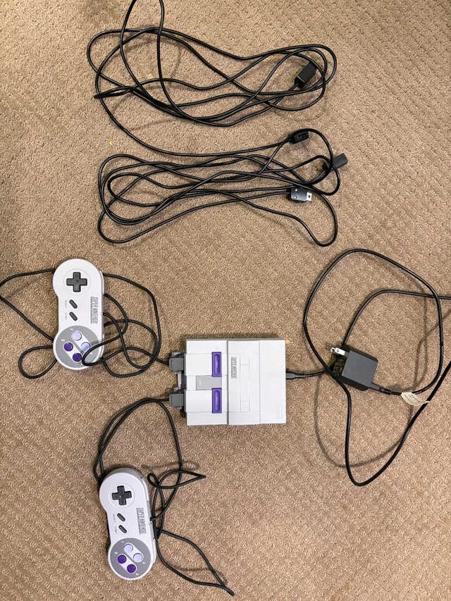 Super Nintendo Classic Mini Edition in excellent working condition. This is the official Nintendo mini console. Also included is two controller cable extension cords. Includes: Super Nintendo Classic Mini console, 2 original SNES controllers, HDMI cable, USB power cable, and 2 controller cable extension cords (great for couch gaming / longer reach). Everything works perfectly. $90 OBO. Cash accepted.