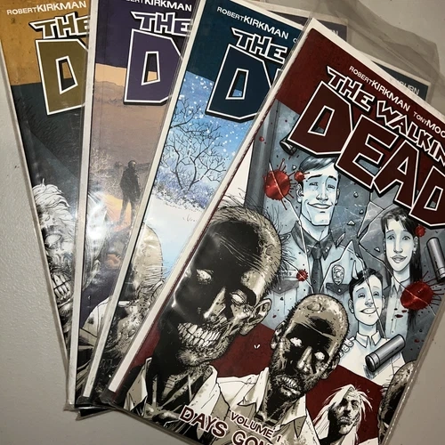 Lot of 4 The Walking Dead graphic novels, volumes 1-4. Image Comics, Robert Kirkman. All in excellent, like-new condition. Bagged and boarded for protection. This collection would be a wonderful gift for any The Walking Dead enthusiast.