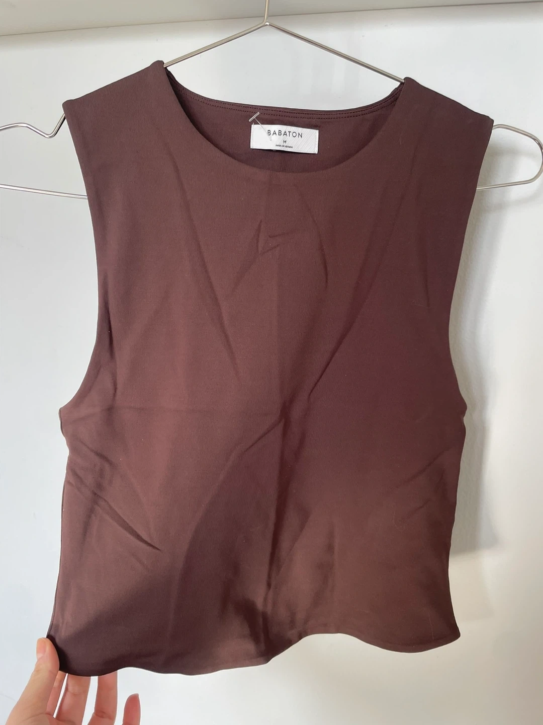 Sabaton brown sleeveless crop top. Size medium. Made from a stretchy material. A great basic for layering or wearing on its own!