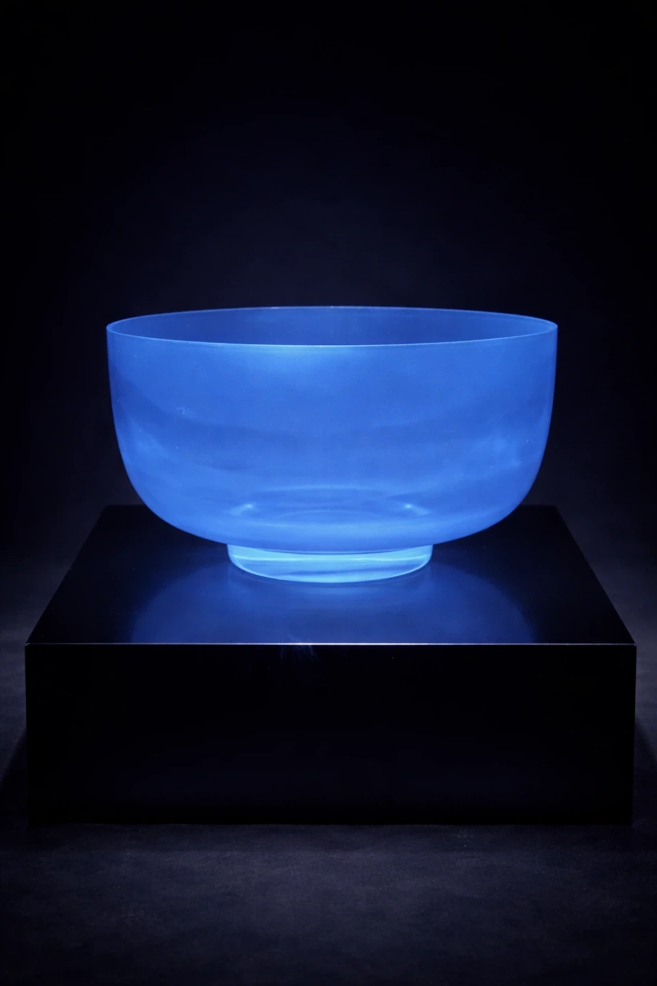 mid century glass bowl, blue art glass, UV reactive glass, manganese glass, pressed glass bowl, sculptural glass, decorative art glass, collectible glass bowl, 1960s glass, heavy glass bowl, modernist decorative glass, exhibition glass, statement glass object, refined pressed glass, organic modern decor, blue glass centerpiece, museum style glass, mid century decorative object, glowing glass bowl, design glass