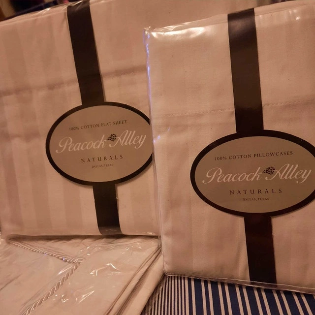 Peacock Alley 5 pieces Queen size bedding set from the Naturals collection. Includes 1 flat sheet, 1 fitted sheet, 2 pillowcases, and 2 shams. Made of 100% Egyptian cotton with a 200 thread count. Original set price was $340, plus $70 for the shams. Accepting reasonable offers.