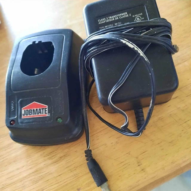 This is a used Jobmate battery charger with a JM-25U Class 2 transformer, perfect for keeping your Jobmate tools powered up and ready to go. It's still in good working condition, ready to give your 18v batteries a boost! Since this is a used item, I'm pricing it fairly. If you're seeing this ad, the charger is still available, so don't hesitate to reach out!