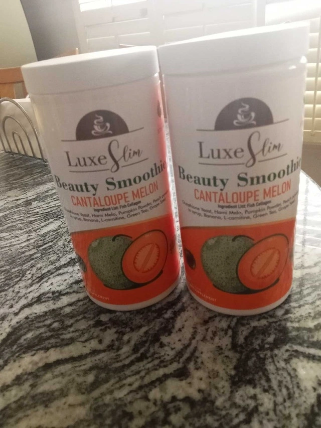 Luxe Slim Beauty Smoothie in Cantaloupe Melon flavour. This is a healthy and beauty drink with Hydrolyzed Marine Collagen and Glutathione. It helps strengthen the body against free radicals, lightens skin tone, and promotes younger-looking skin. Ingredients include Hydrolyzed Marine Collagen, Cantaloupe Melon, Honeydew Melon, Reduced L-Glutathione, Almond Milk, Stevia, Peach, Banana, Lemon, L-Carnitine, Green Tea, Garcinia Cambogia, and Grape Seed. 500 grams. Condition: New. Payment accepted: Cash or cashless.