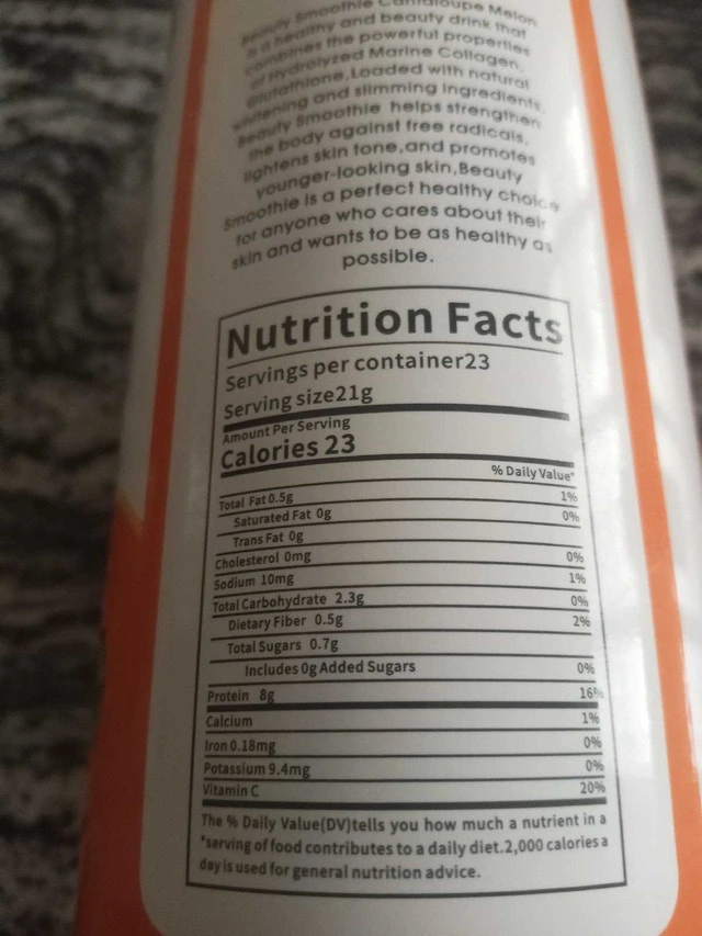 Luxe Slim Beauty Smoothie in Cantaloupe Melon flavour. This is a healthy and beauty drink with Hydrolyzed Marine Collagen and Glutathione. It helps strengthen the body against free radicals, lightens skin tone, and promotes younger-looking skin. Ingredients include Hydrolyzed Marine Collagen, Cantaloupe Melon, Honeydew Melon, Reduced L-Glutathione, Almond Milk, Stevia, Peach, Banana, Lemon, L-Carnitine, Green Tea, Garcinia Cambogia, and Grape Seed. 500 grams. Condition: New. Payment accepted: Cash or cashless.