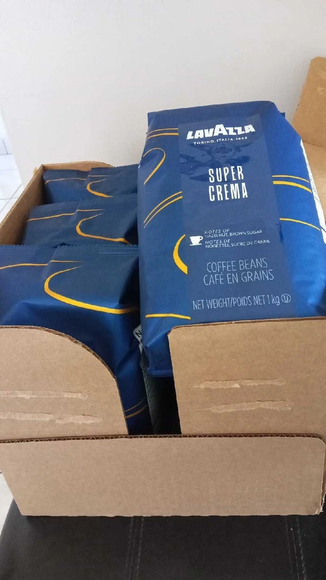 Indulge in the rich aroma of Lavazza Super Crema coffee beans, perfect for your daily brew. This is a new, unopened 6-pack of 1 kg bags. Brand: Lavazza, Type: Super Crema, Weight: 1 kg per bag, Quantity: 6 bags. Cash accepted.