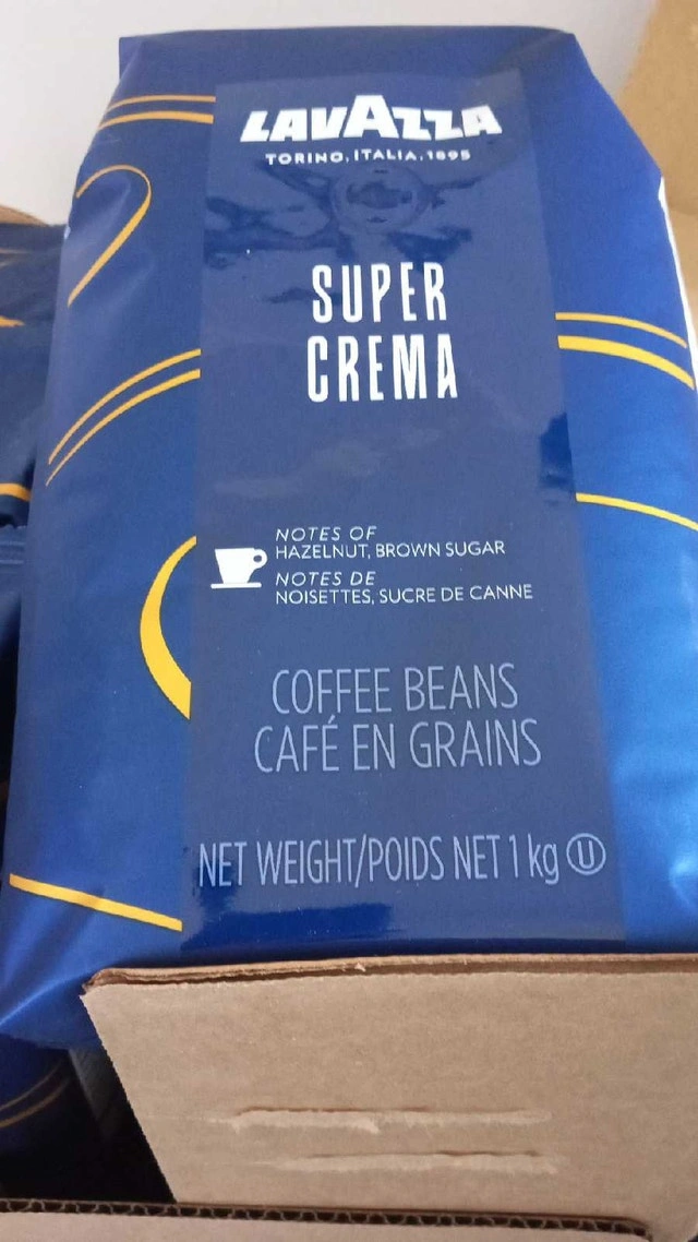Indulge in the rich aroma of Lavazza Super Crema coffee beans, perfect for your daily brew. This is a new, unopened 6-pack of 1 kg bags. Brand: Lavazza, Type: Super Crema, Weight: 1 kg per bag, Quantity: 6 bags. Cash accepted.