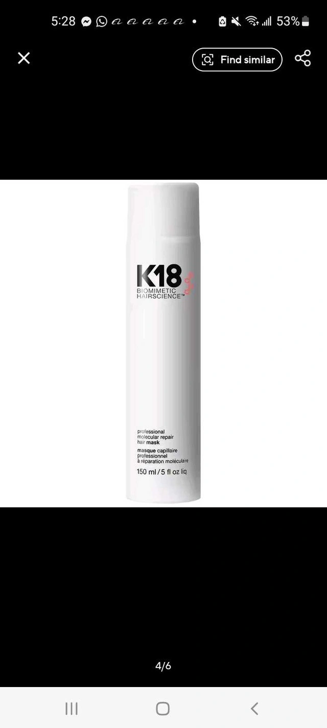 Achieve professional-level hair repair with this K18 Professional Molecular Repair Hair Mask, presented in a generous 150ml size. This mask is designed to rejuvenate and revitalize hair in just 4 minutes, restoring strength and elasticity. It is in new condition, complete with its original box. This bottle is a "brand" replica and a very good one. Have many positive results from other customers. Cash accepted: Yes. Cashless payment: Yes.