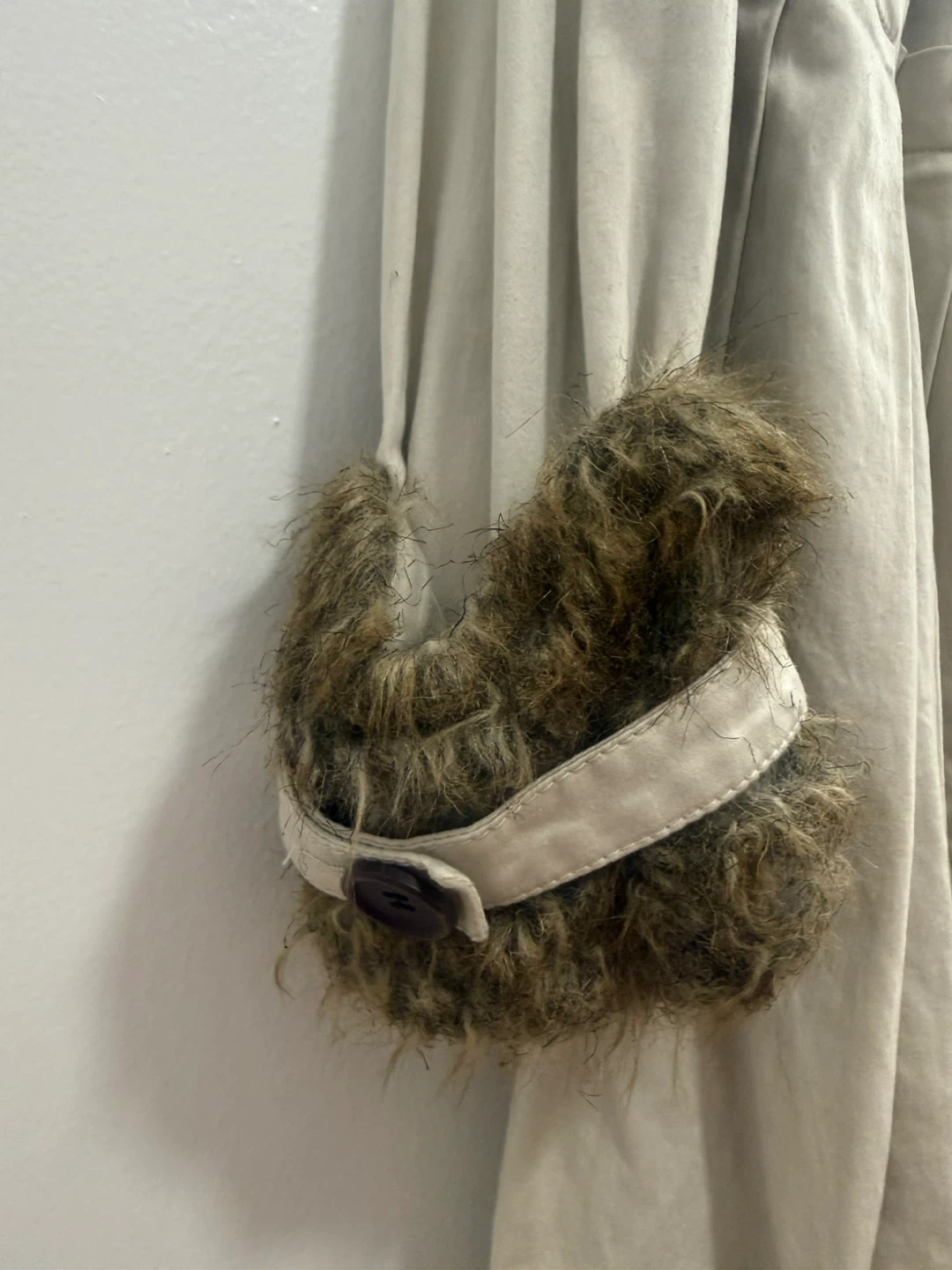 Beige Double-Breasted Trench Coat with Faux Fur Cuffs