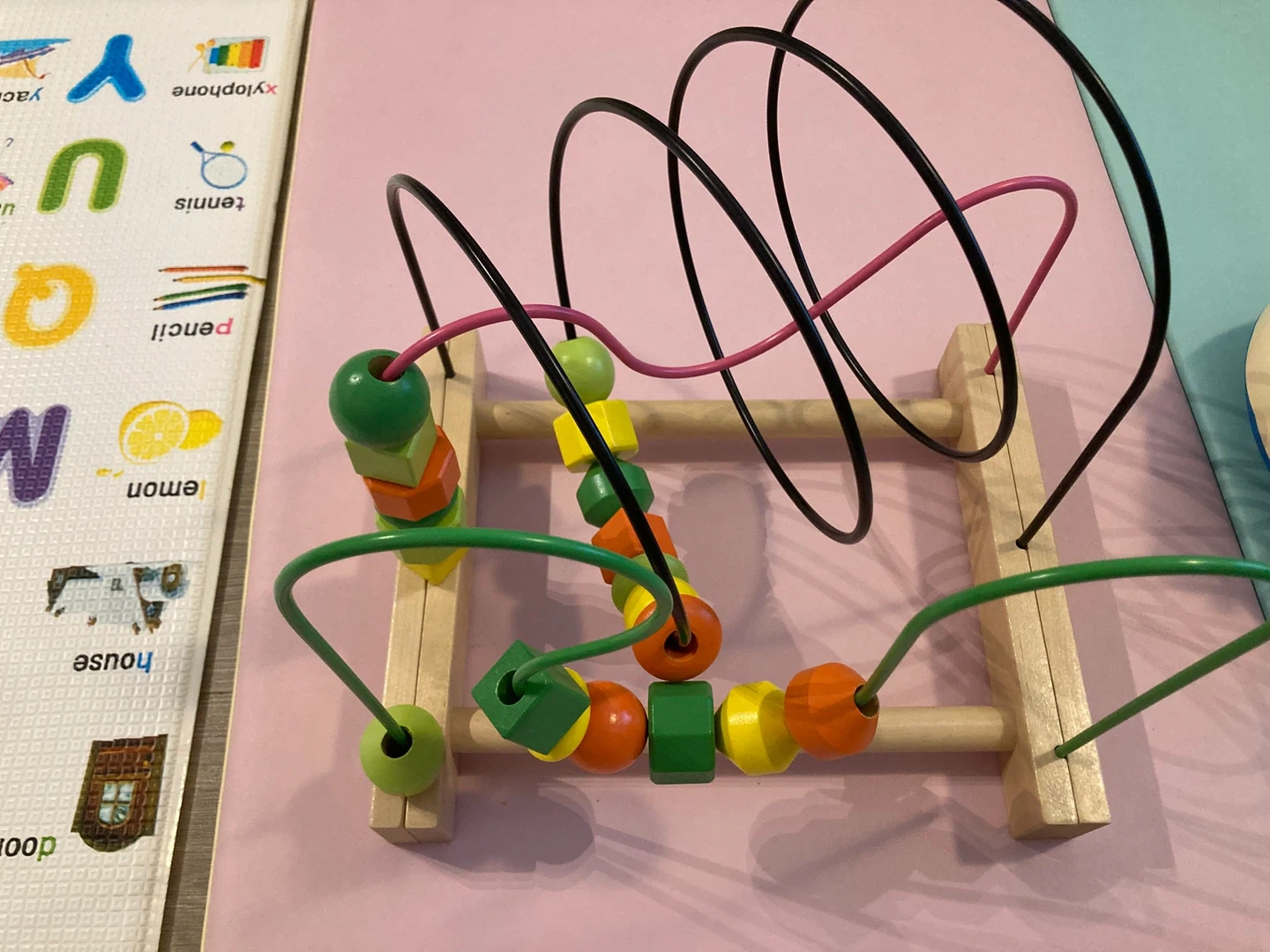 This is a classic wooden bead maze toy for little ones. It has colourful beads and sturdy wooden construction. Great for developing fine motor skills and hand-eye coordination!