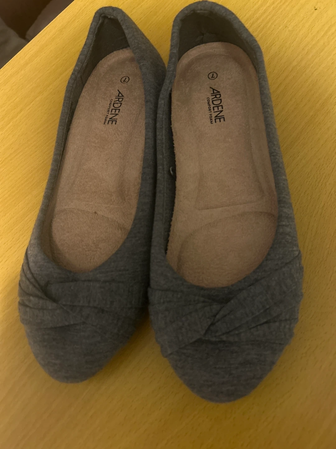 These Ardene ballet flats are a size 7 and come in a stylish grey colour. They feature a comfortable foam insole for all-day wear. These shoes are great for casual outings or dressing up an outfit!