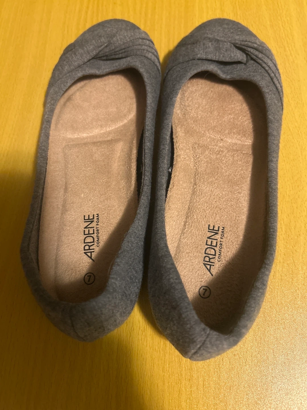 These Ardene ballet flats are a size 7 and come in a stylish grey colour. They feature a comfortable foam insole for all-day wear. These shoes are great for casual outings or dressing up an outfit!