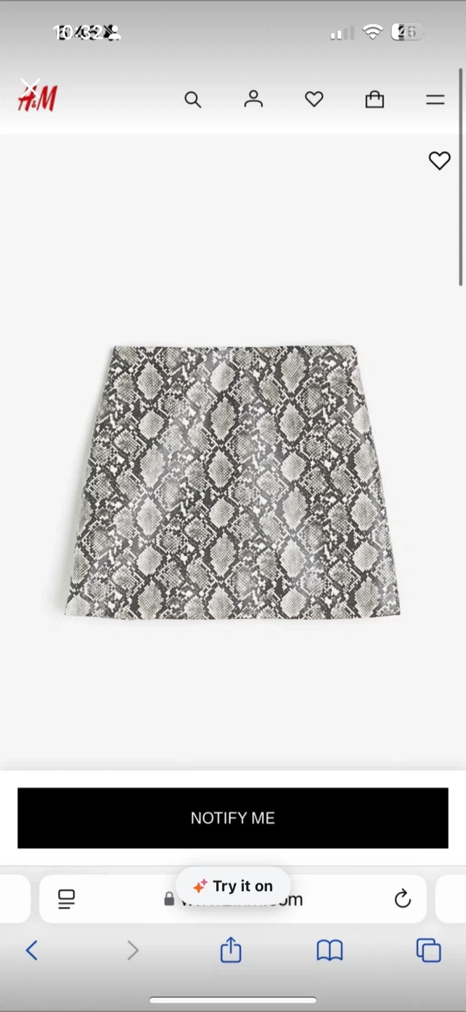This is an H&M mini skirt with a cool snake print. It's made of faux leather and has a flattering A-line cut. It's a stylish piece for any wardrobe!