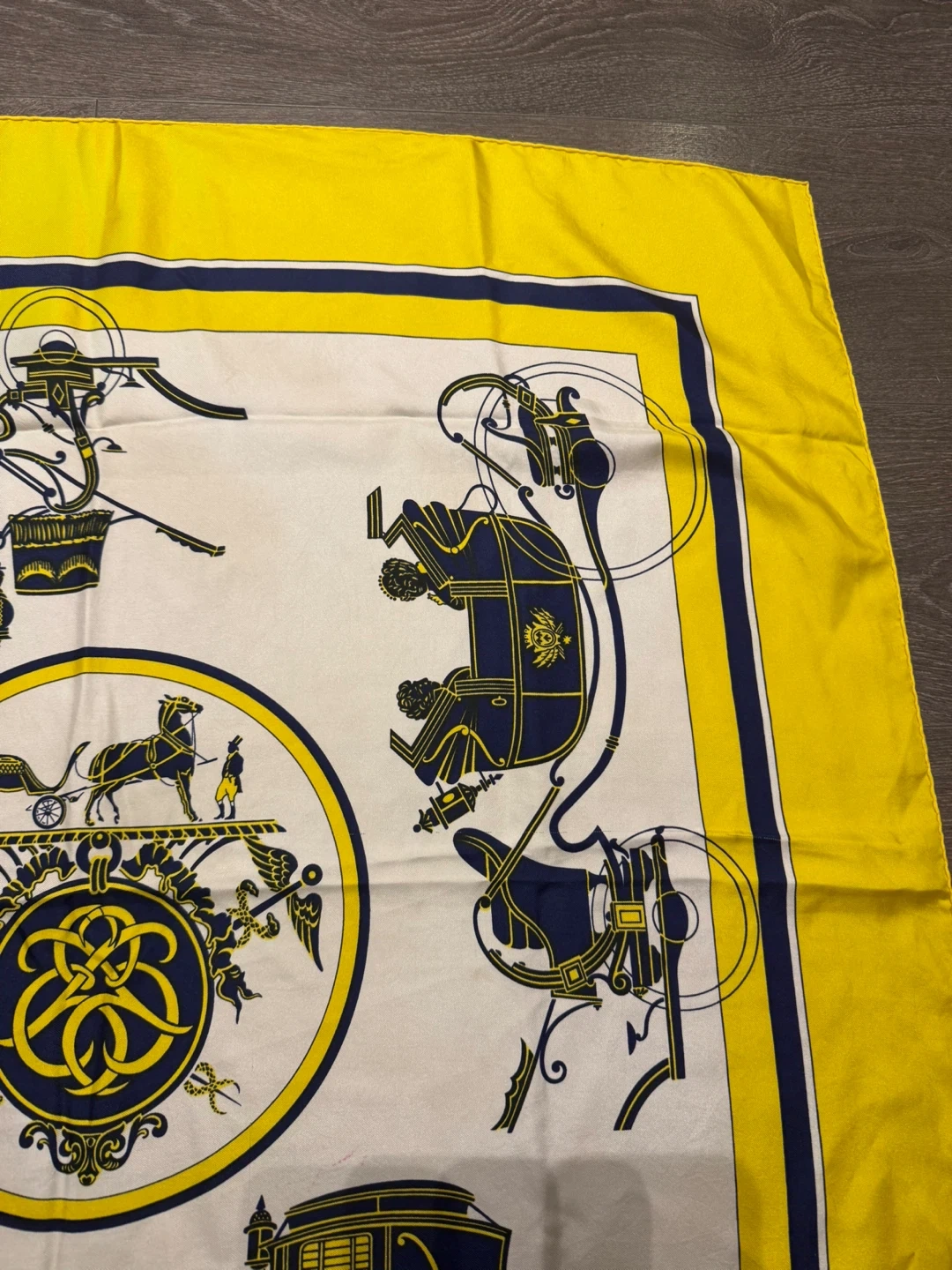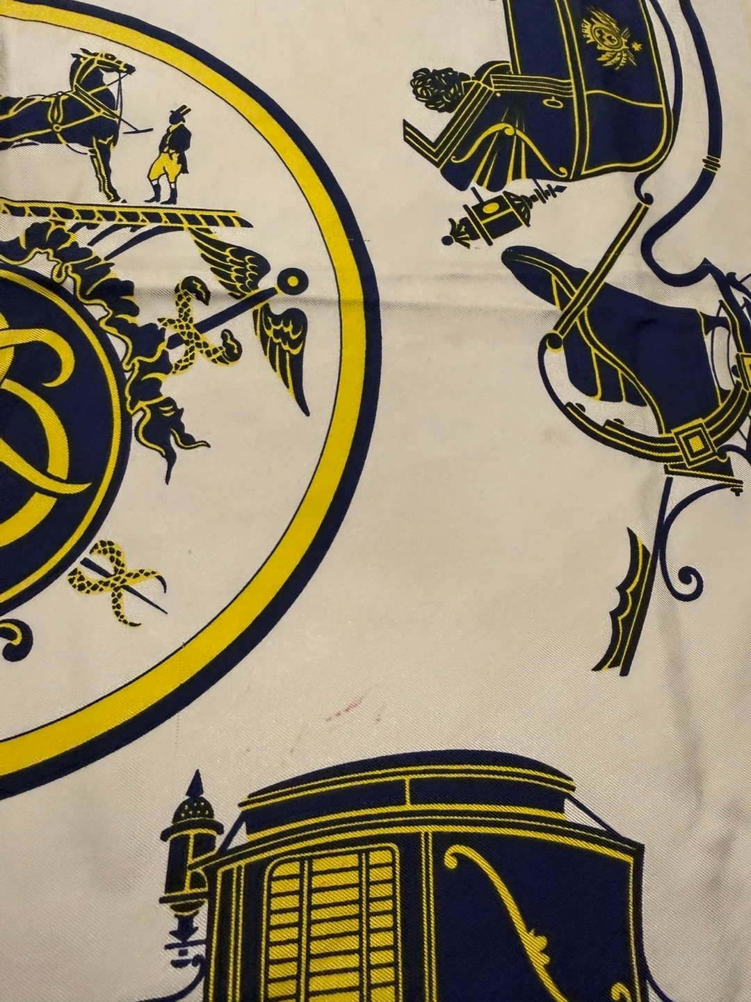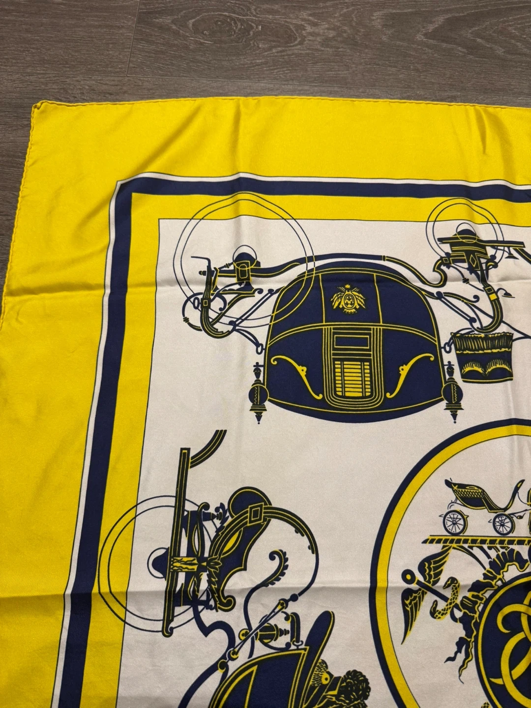 100% Authentic Hermes Scarf Silk Ex Libris Yellow Vintage Rear