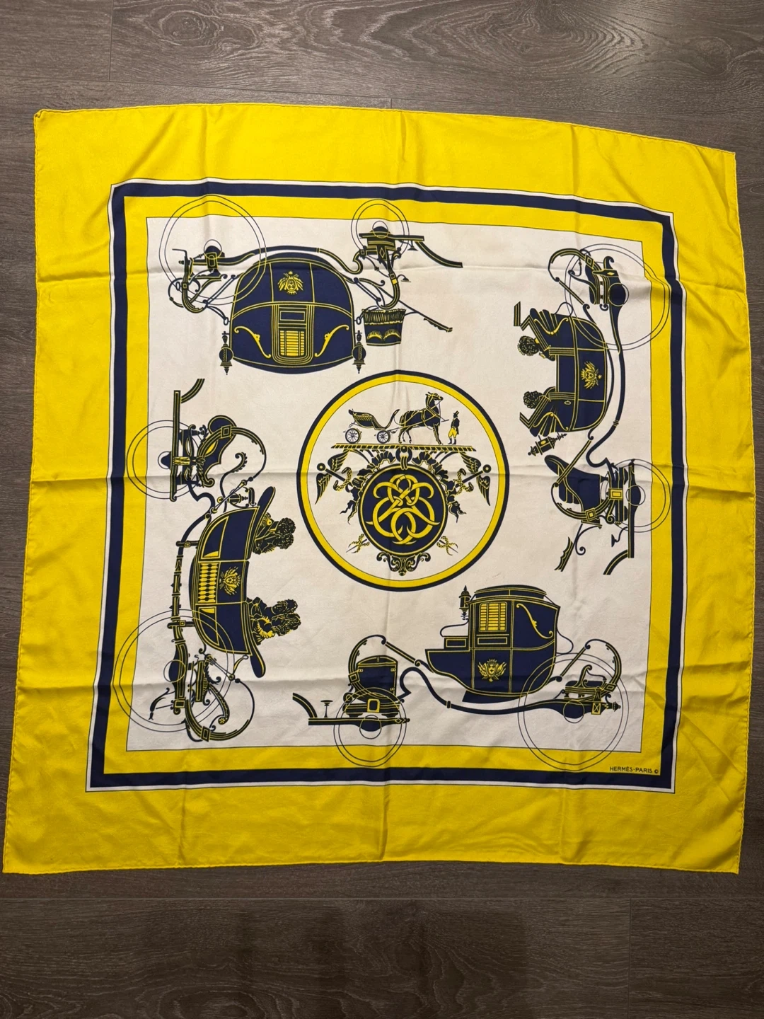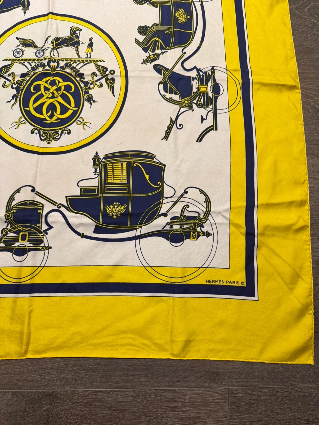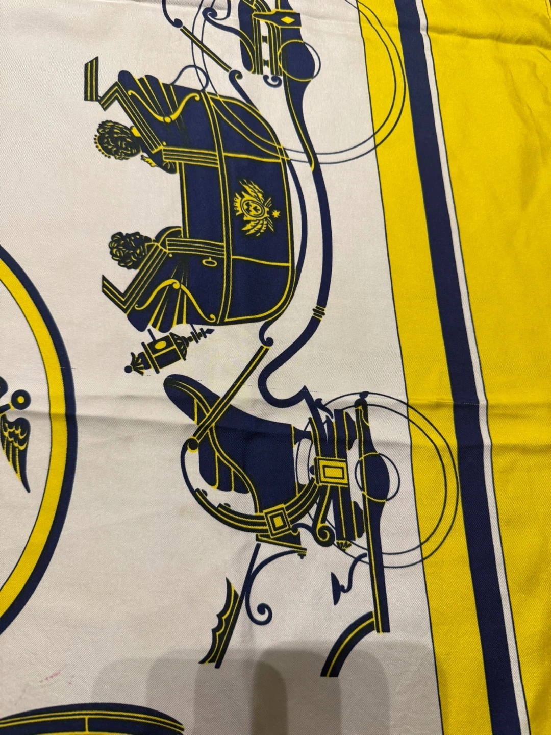 100% Authentic Hermes Scarf Silk Ex Libris Yellow Vintage Rear