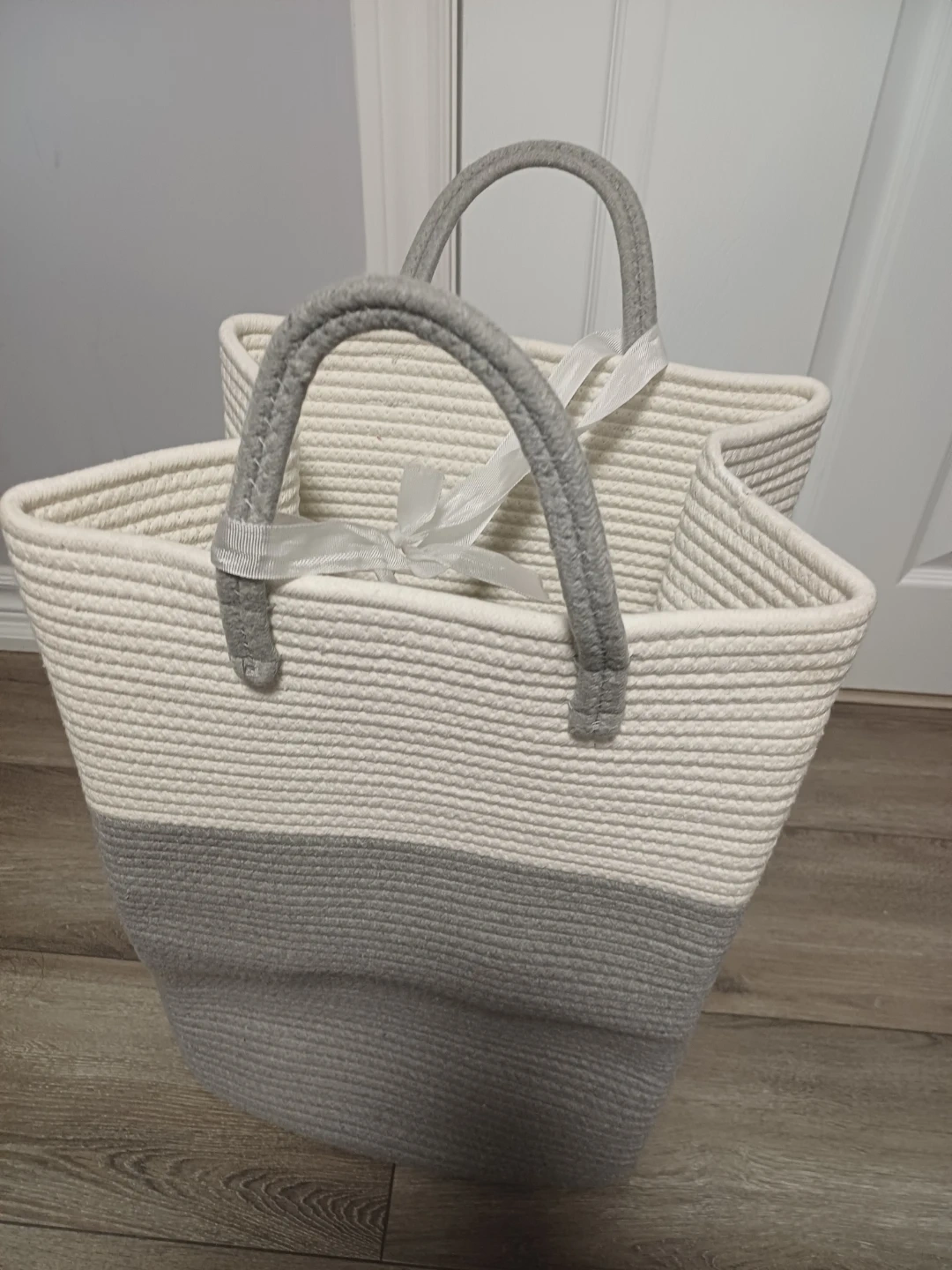This Brand new.... sturdy rope basket is perfect for storing laundry or other household items. It's made of durable woven rope and features comfortable handles for easy carrying. The neutral colour palette makes it a stylish addition to any room.