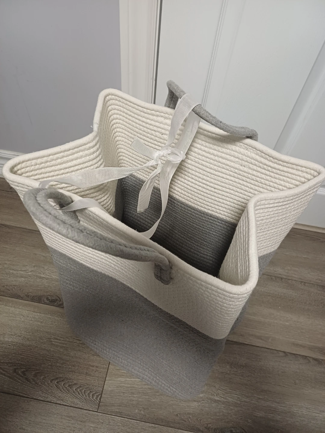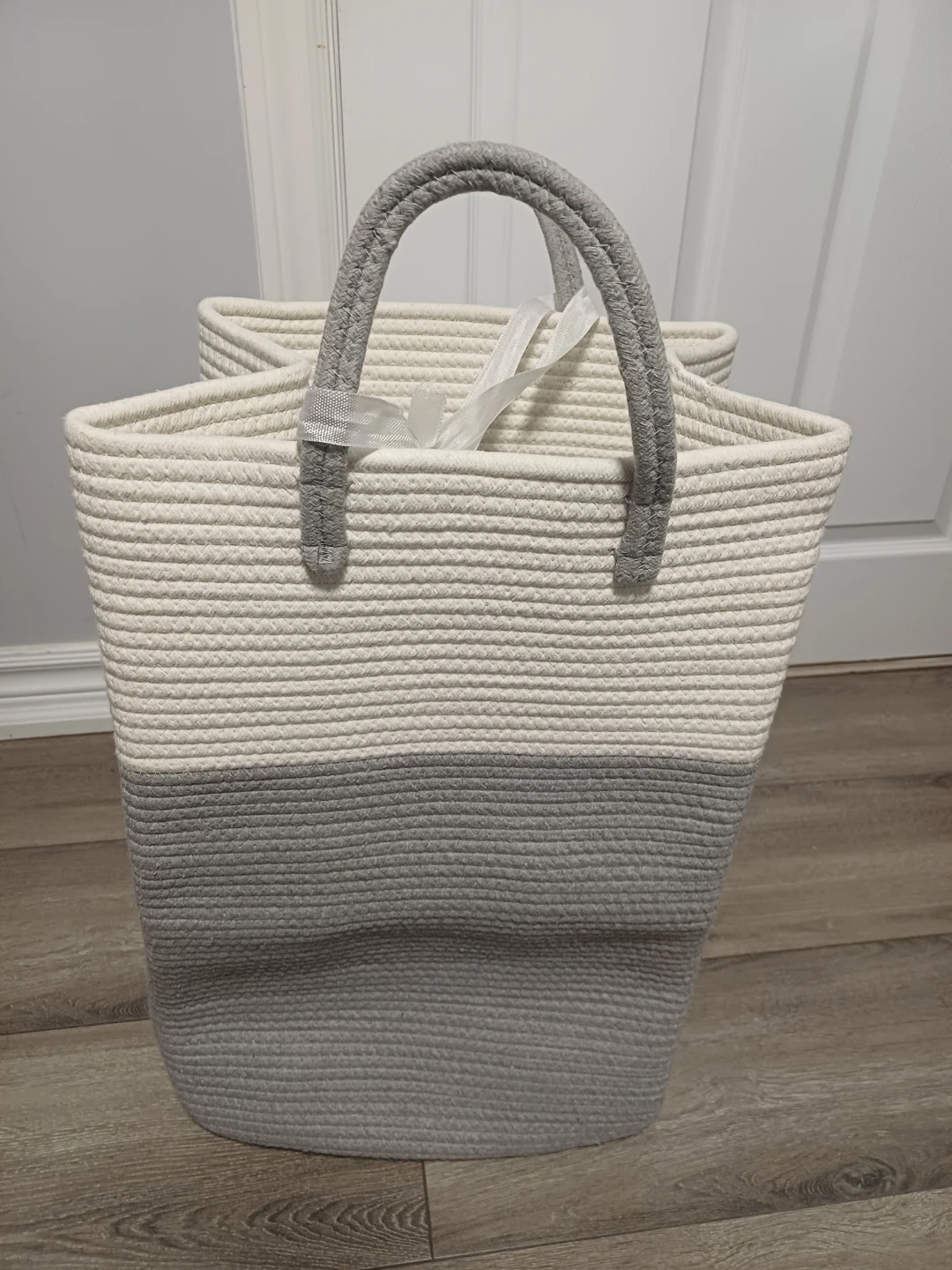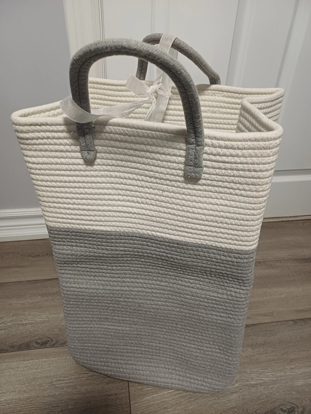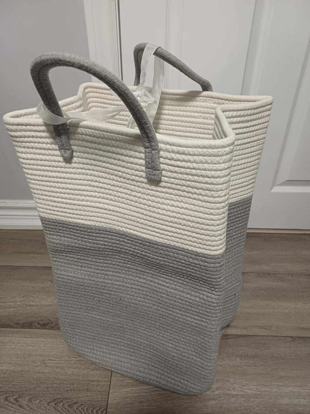This Brand new.... sturdy rope basket is perfect for storing laundry or other household items. It's made of durable woven rope and features comfortable handles for easy carrying. The neutral colour palette makes it a stylish addition to any room.