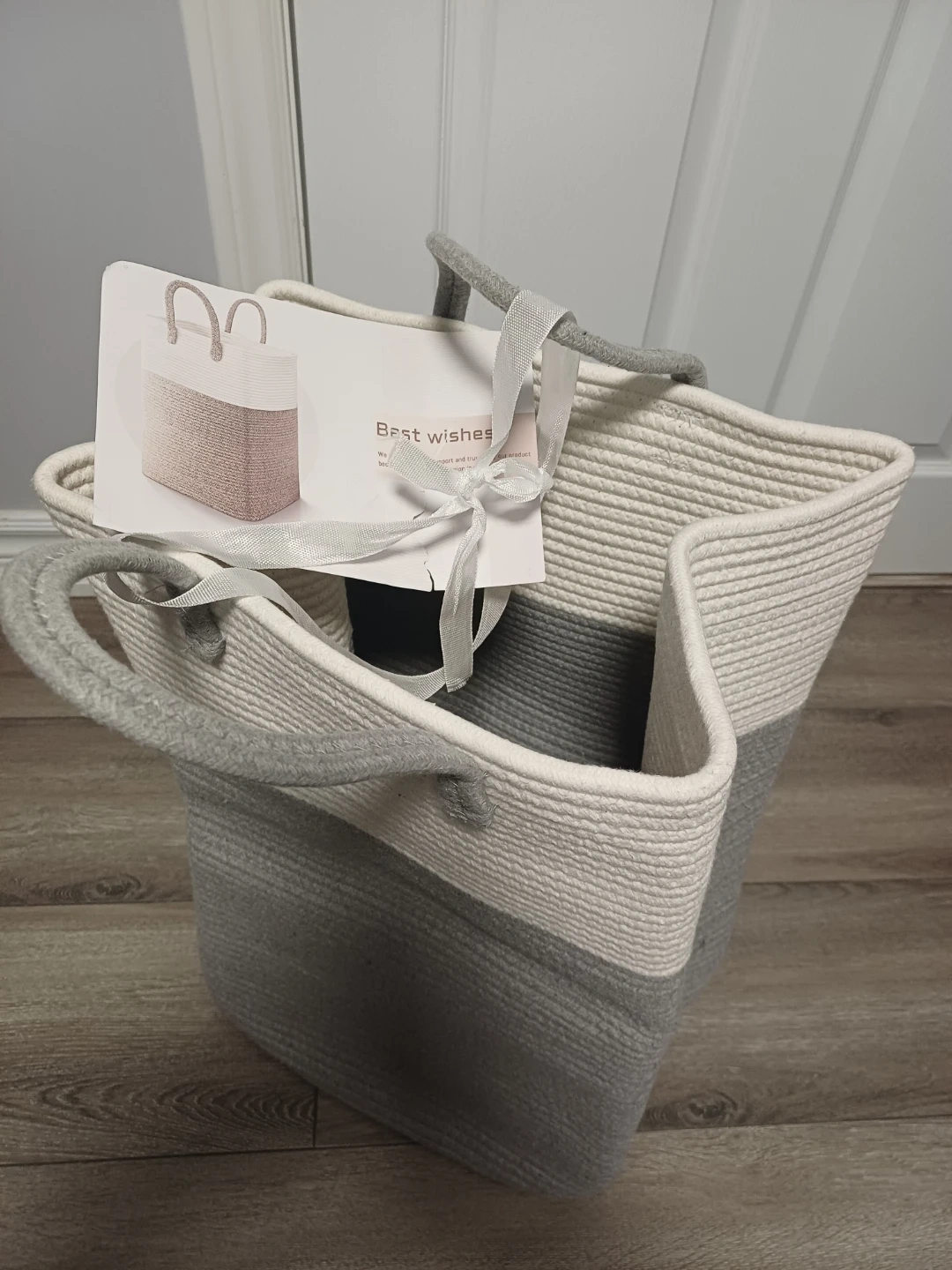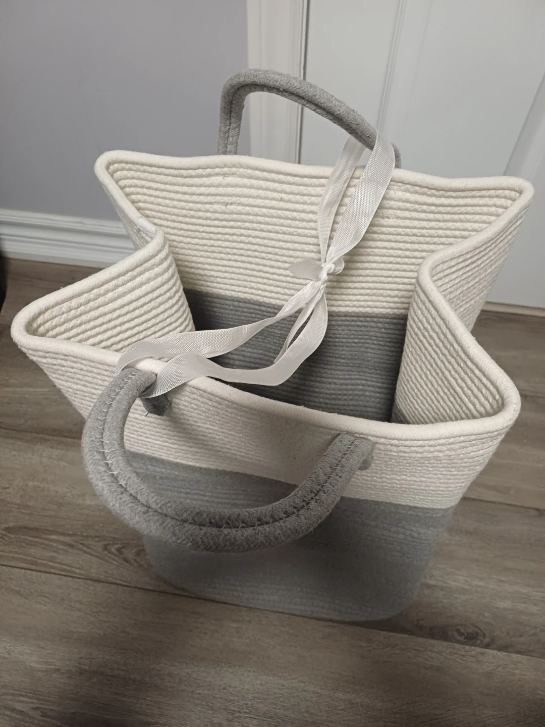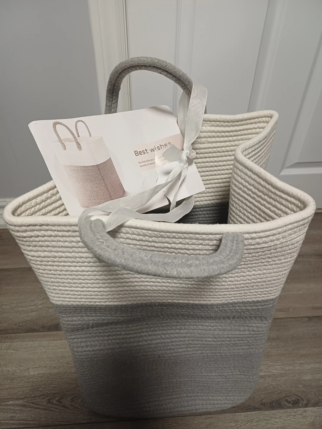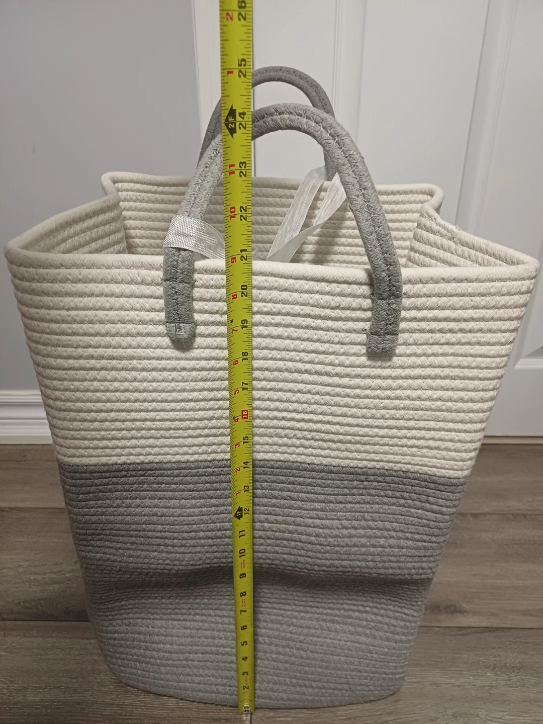 This Brand new.... sturdy rope basket is perfect for storing laundry or other household items. It's made of durable woven rope and features comfortable handles for easy carrying. The neutral colour palette makes it a stylish addition to any room.