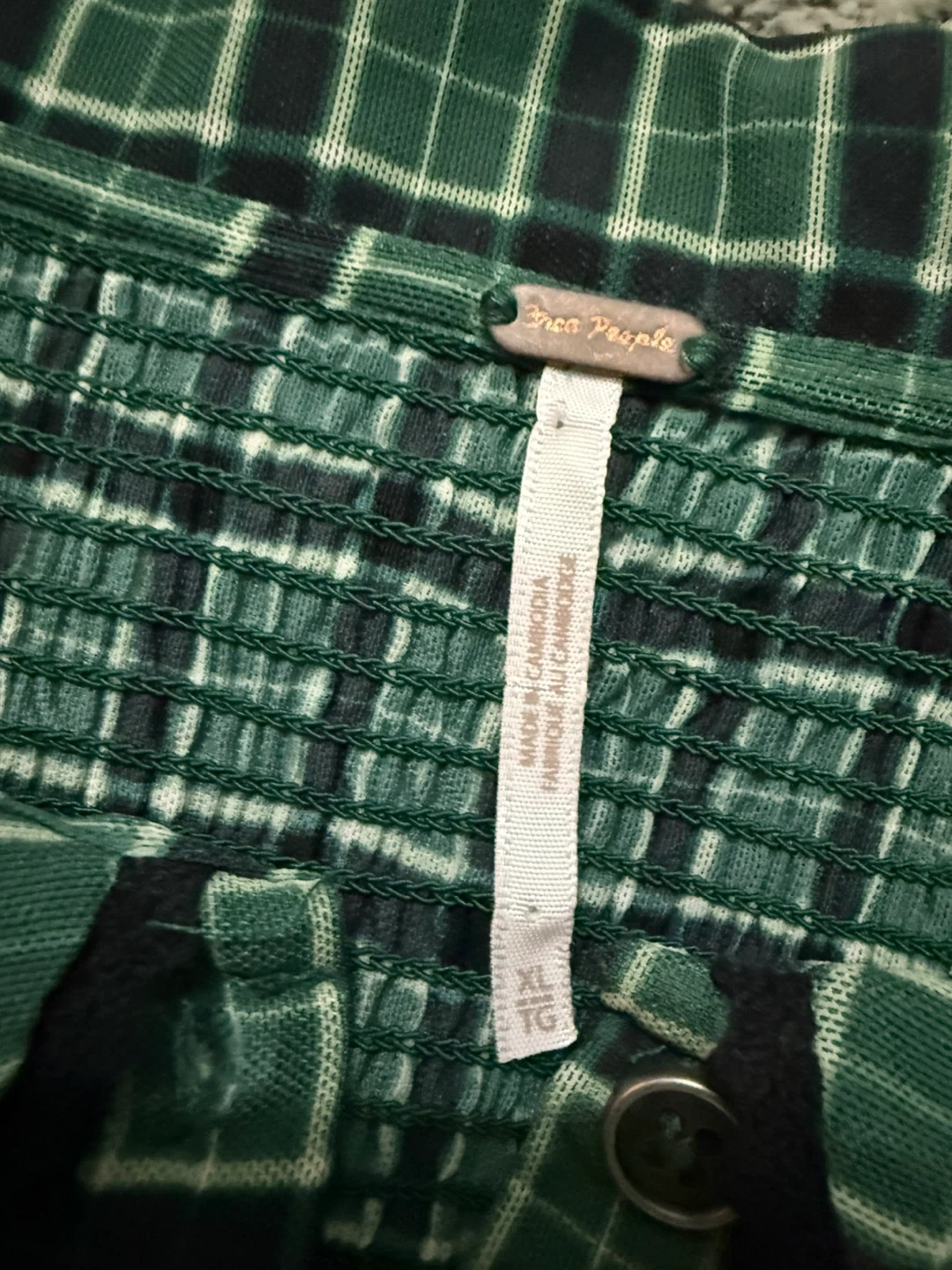 Free People Green Plaid Smocked Button-Up top