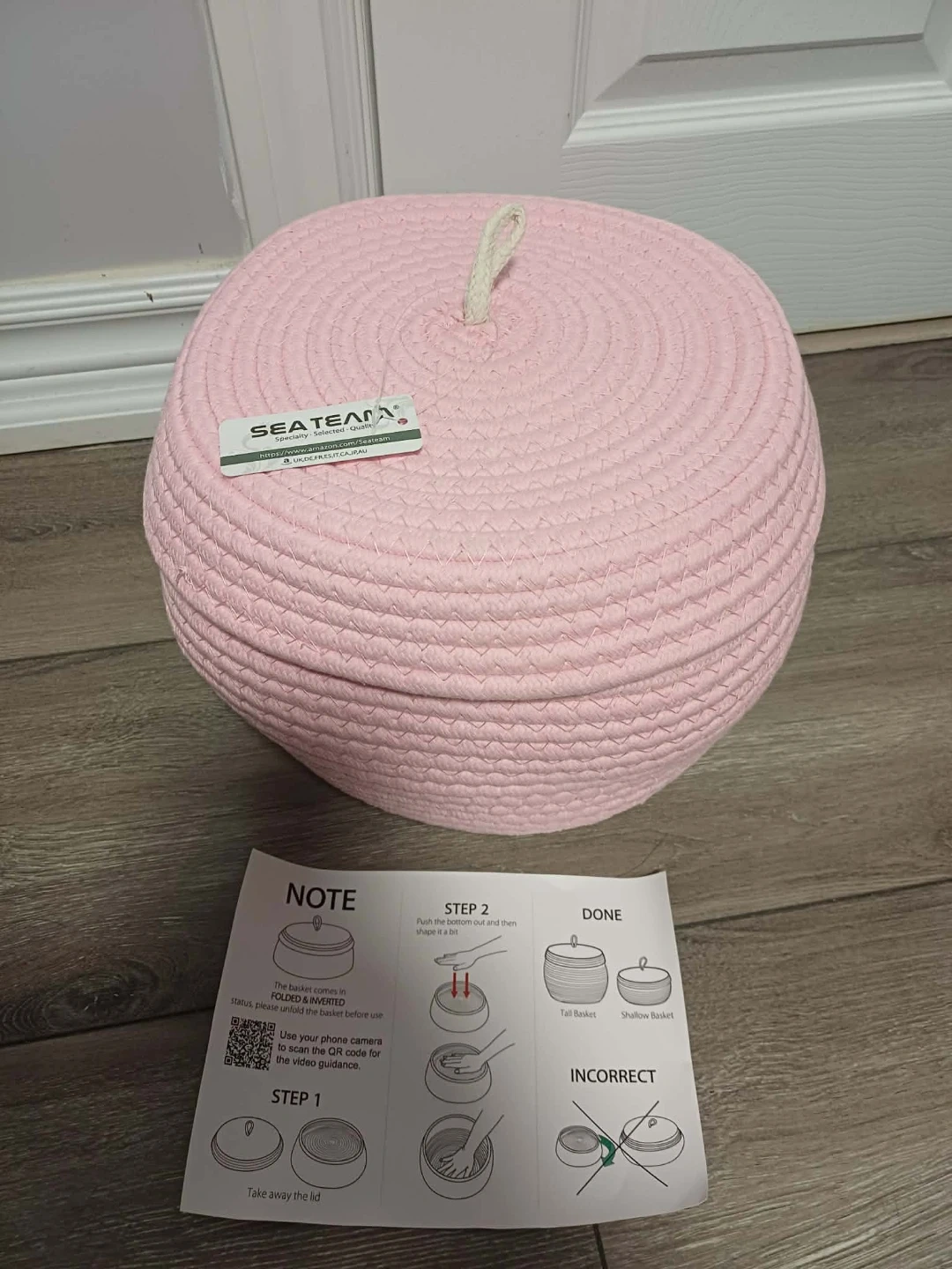 SEATEAM Rope Storage Basket with Lid - Pink