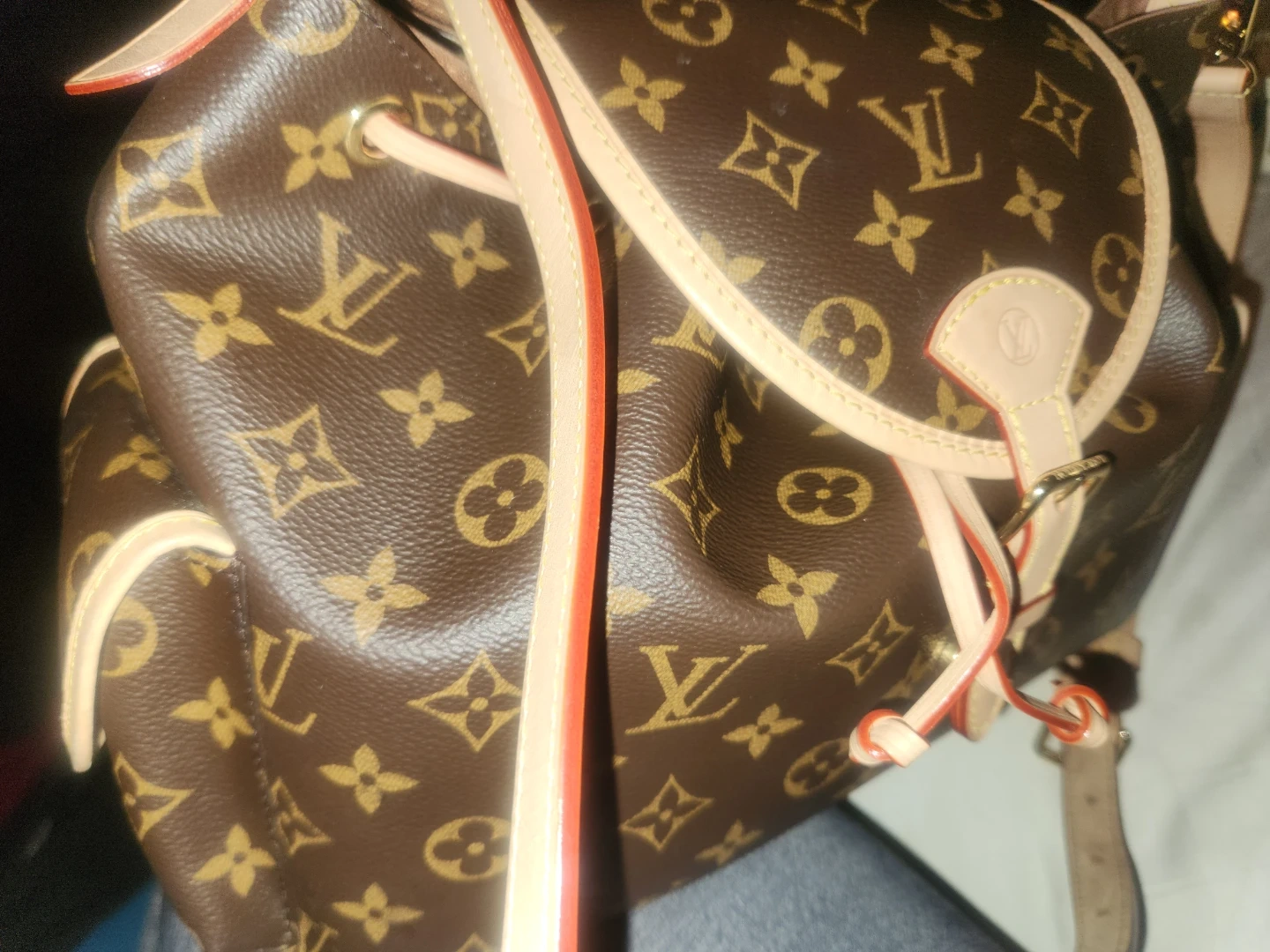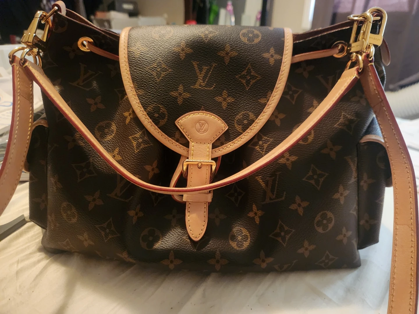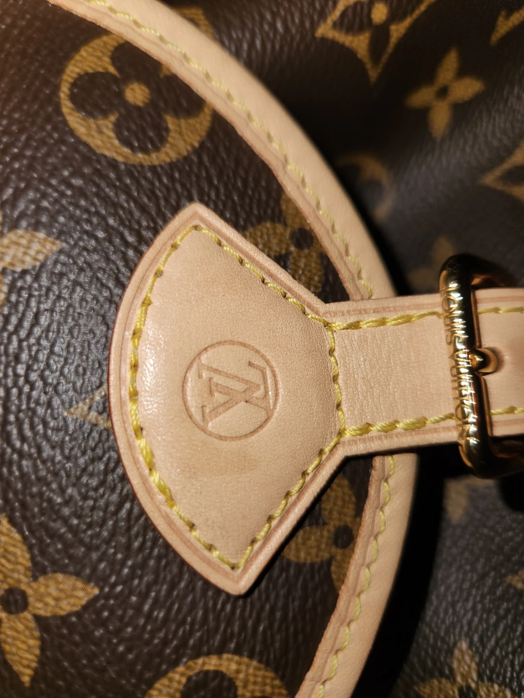 This Louis Vuitton shoulder bag is crafted from their iconic monogram canvas with Vachetta leather trim. It features a drawstring closure and a flap with a buckle detail. The bag has a single adjustable strap and a fabric-lined interior. It's a stylish and practical accessory for everyday use. Gently used, excellent condition. Priced for quick sale and open to reasonable offers.