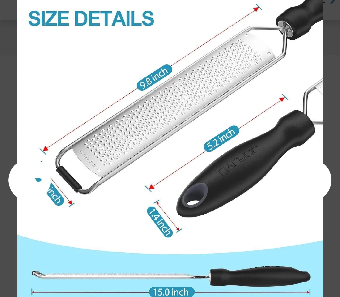 JOFUYU Lemon Zester Cheese Grater - 15 inch Stainless Steel