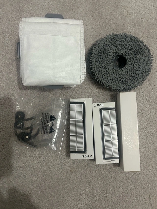 Selling a collection of brand new accessories for the Dreametech P10 Pro vacuum cleaner. This set includes replacement filters, mop heads, dust bags, and side brushes to keep your device running smoothly.