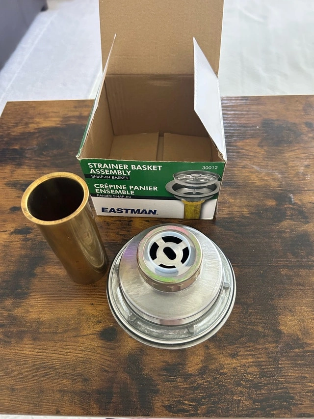 Offering a brand new Eastman strainer basket assembly, perfect for your kitchen sink. This assembly includes all necessary components for easy installation. It's ready to use, ensuring a tight seal and efficient draining. Made from durable materials for long-lasting use. Let me know if you're interested!