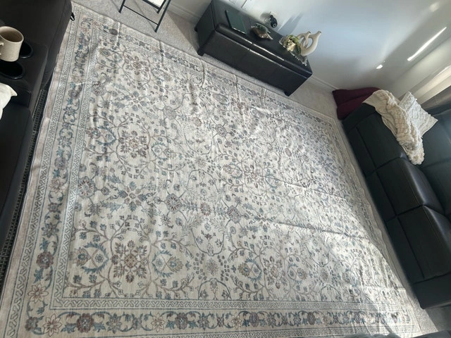 This brand-new 8x10 area rug is perfect for adding a touch of elegance to your living room or bedroom. It features a beautiful design and is machine washable for easy care. Size: 8x10 feet. Material: High-quality, durable fabric. Design: Elegant and versatile. Care: Machine washable. Condition: New, still in original packaging. If the ad is up, it's still available.