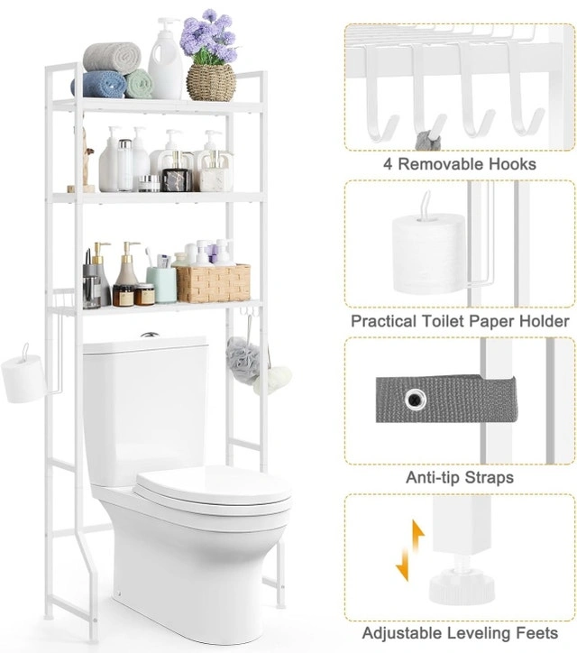 This brand new over-the-toilet rack is designed to maximize your bathroom's storage space efficiently. The rack features a sturdy metal frame with three shelves, perfect for organizing toiletries, towels, and other bathroom essentials. It's easy to assemble and fits over most standard toilets, adding a touch of functionality and style to your bathroom decor. Features include: Space-saving design, Durable metal construction, Three-tier shelving, Easy assembly, Adds extra storage to small bathrooms. Spruce up your bathroom with this super handy rack – it's just waiting to hold all your lotions and potions!