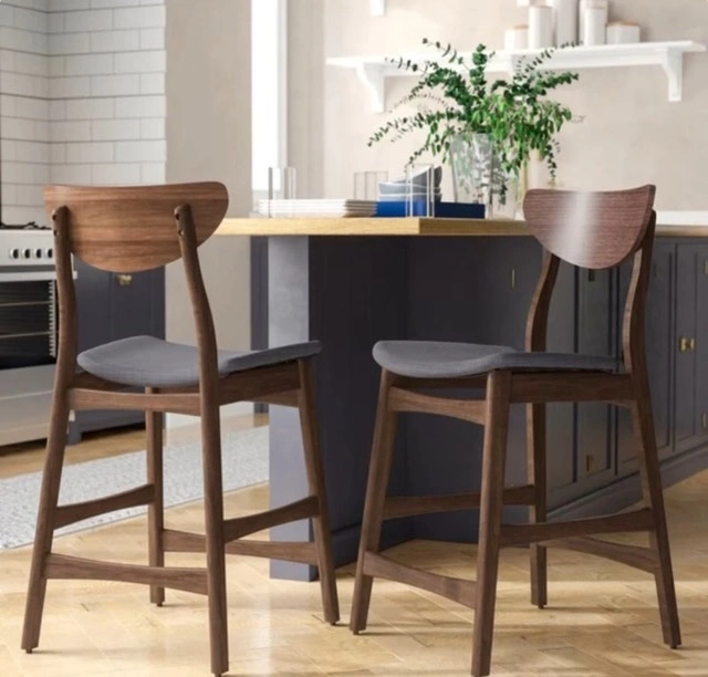 Enhance your kitchen or bar area with these stylish Target bar stools. Featuring a comfortable grey cushioned seat and a sturdy wooden frame, these stools offer both elegance and durability. They are new, ready to add a touch of modern charm to your home. Specifications: Brand: Target, Seat Material: Grey cushioned fabric, Frame Material: Wood, Style: Modern, Quantity: Two (2) bar stools. Priced competitively for a quick sale. If the ad is up, the item is available!