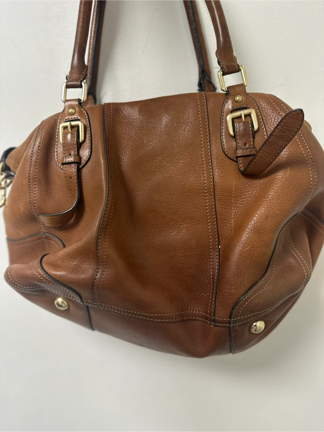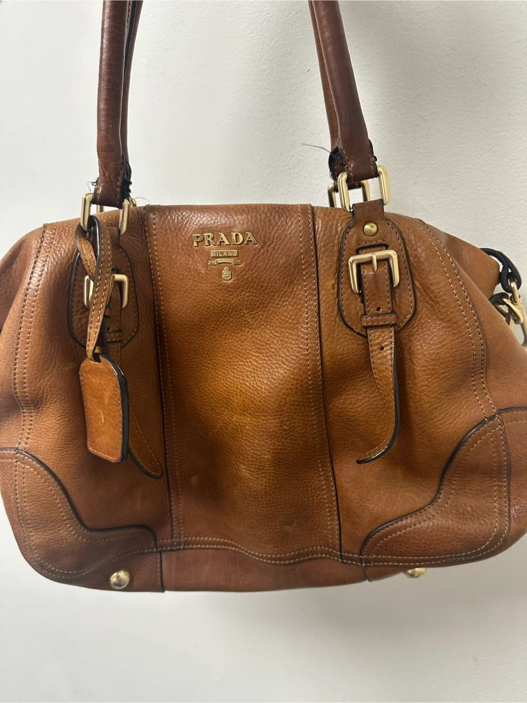 Classic PRADA satchel handbag. It's made from genuine brown leather with gold-tone hardware. Perfect for everyday use!