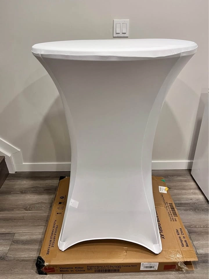 Rent a stylish Cocktail Table & Spandex Cover Combo for your next event! Perfect for parties, weddings, corporate events, and more.